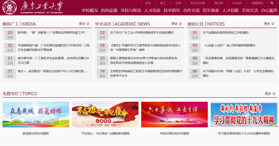 本网讯 新版主页紧跟网页设计的前沿技术,以“更注重用户体验、更彰显广工特色”为主旨,进一步重新布局,美化界面,优化内容架构,扩大信息含量。在模块设计和功能上,新版主页亮点多多: