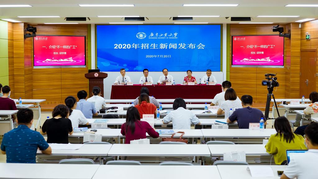 本网讯 又到了一年一度的高考填报志愿时间。为了让广大考生和家长,以及社会各界了解学校的发展新动态、人才培养新亮点、招生新变化,7月20日上午,线上买球官网(中国)官方网站2020年招生新闻发布会在大学城校区实验三号楼智慧课室举行。会上,校长邱学青从学校的办学实力和水平、人才培养特色亮点、促进学生全面发展举措、招生政策和变化等方面介绍了一个“不一样的广工”,并生动阐述了广工“大、实、特、快”四个鲜明特征。教务处处长李丽娟、学生工作处处长植林、招生办公室主任苏兆祥分别发布了相关信息。发布会上,回答了记者、考生及家长提出的问题。