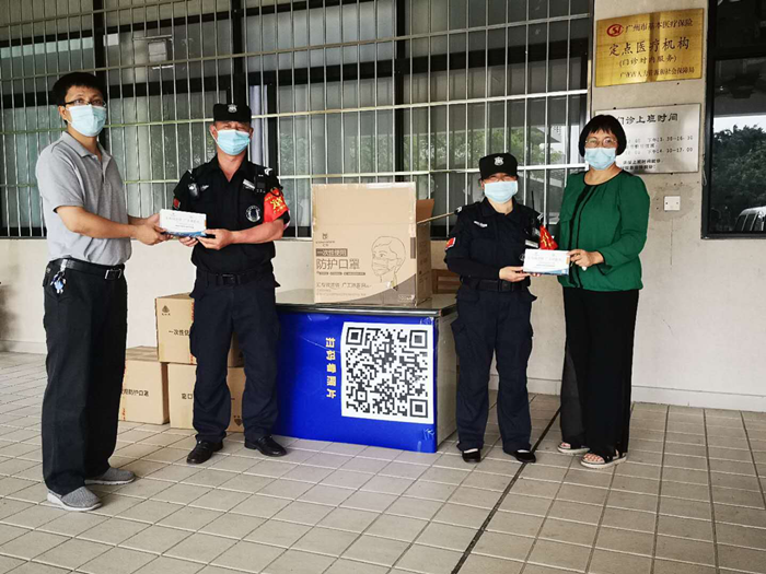 向学校安保人员派发口罩