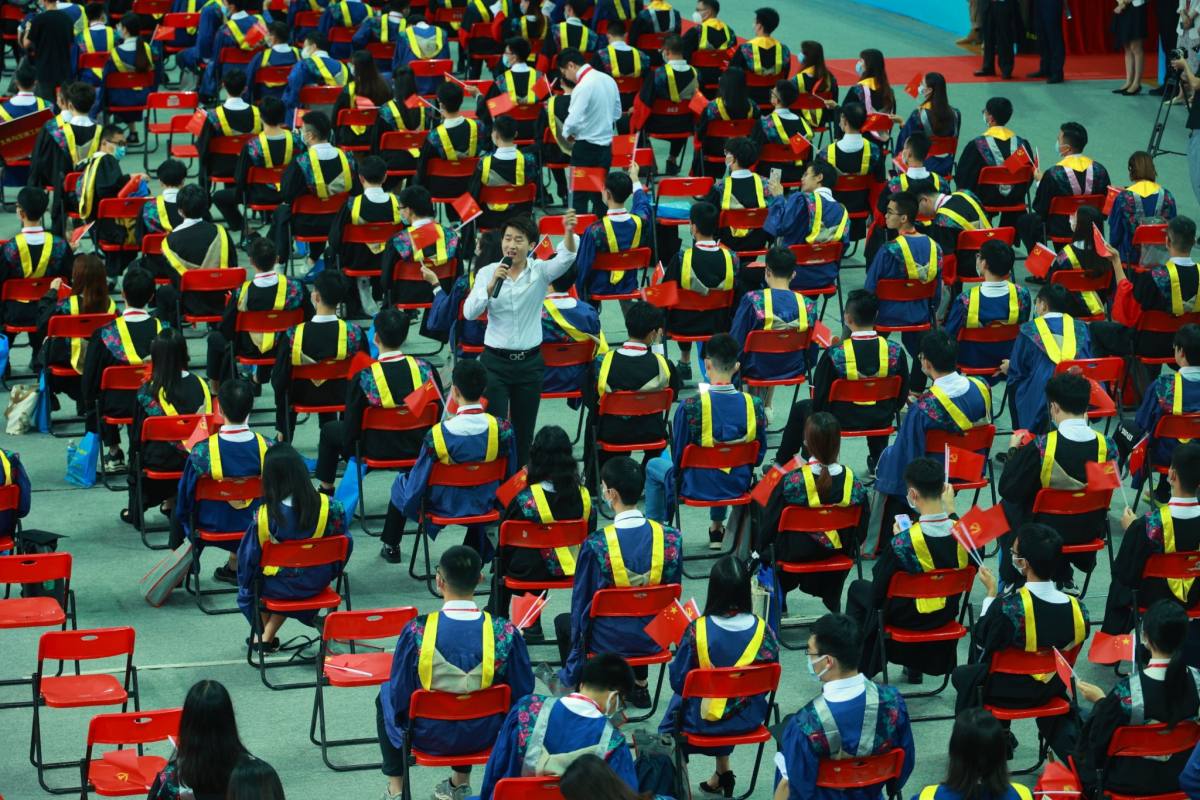 从党的十九大到改革开放40周年,再到新中国成立70周年,校长邱学青带领同学们回顾了不平凡的四年和学校快速发展所取得的显著成绩。对于同学们全过程参与了学校高水平大学建设,邱学青说:“你们的思想政治素质、创新能力、实践技能和社会责任感显著增强,成就了不一样的自己。”尤其是面对新冠疫情,邱学青对同学们以“狭路相逢勇者胜”的精神与姿态,奋力“战”疫,顺利完成了学业表示赞赏。