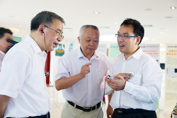 胡春华书记现场体验国家自然科学二等奖获得者谢胜利教授团队研发的电子听诊器