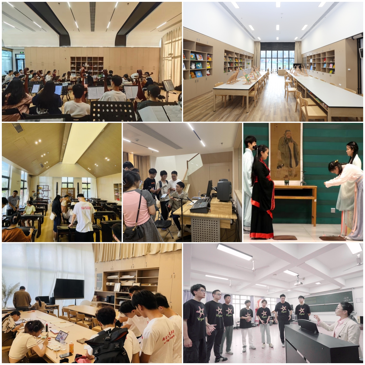 文化活动中心的美育工作坊主要分为音乐舞蹈类和美术类两大类,包括交响乐、合唱艺术、 舞蹈、民乐、语言艺术、敲击乐、阅音琴社、音乐科技艺术、灰塑、皮影、中国礼乐文化、书画等工作坊。