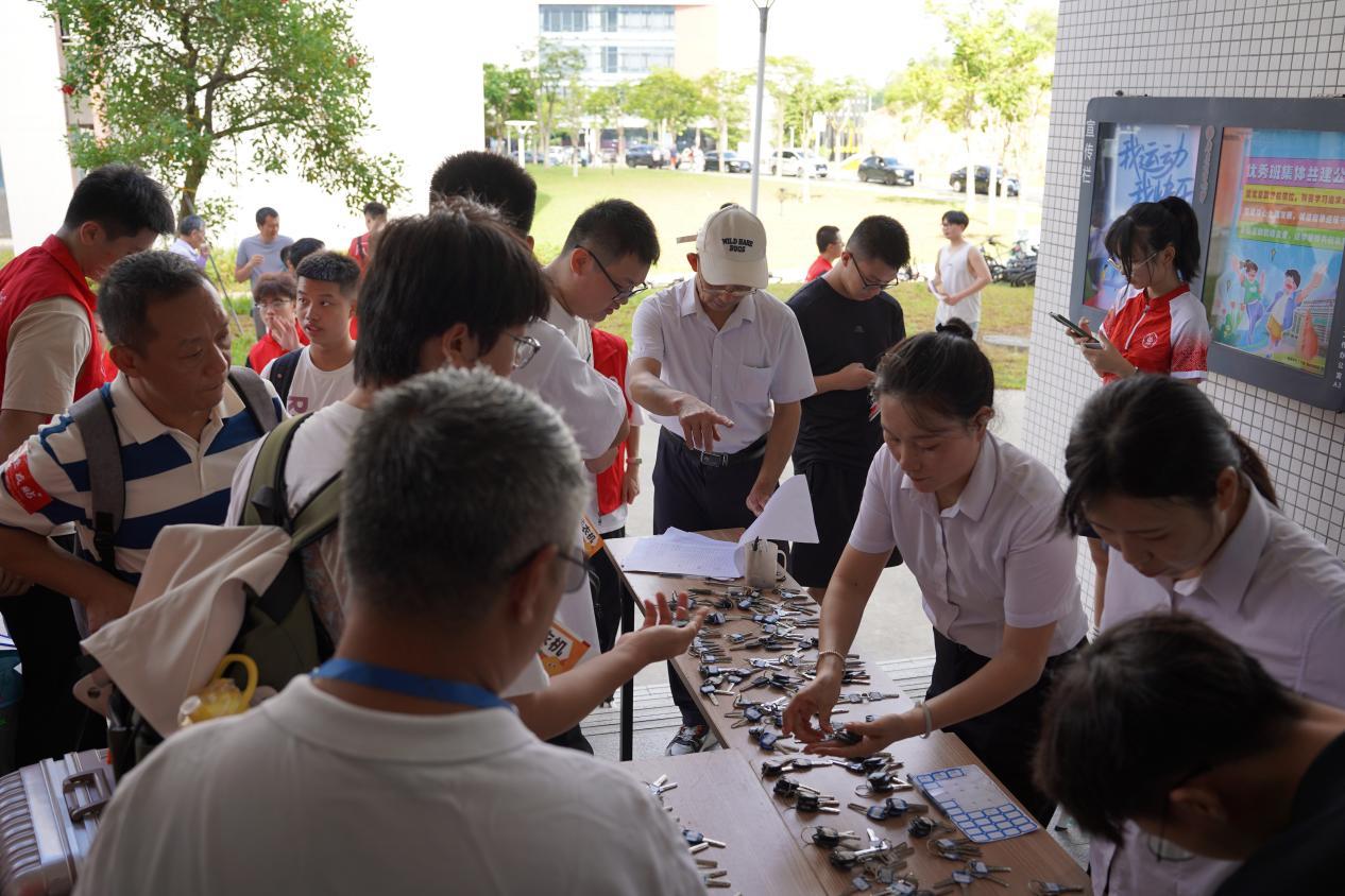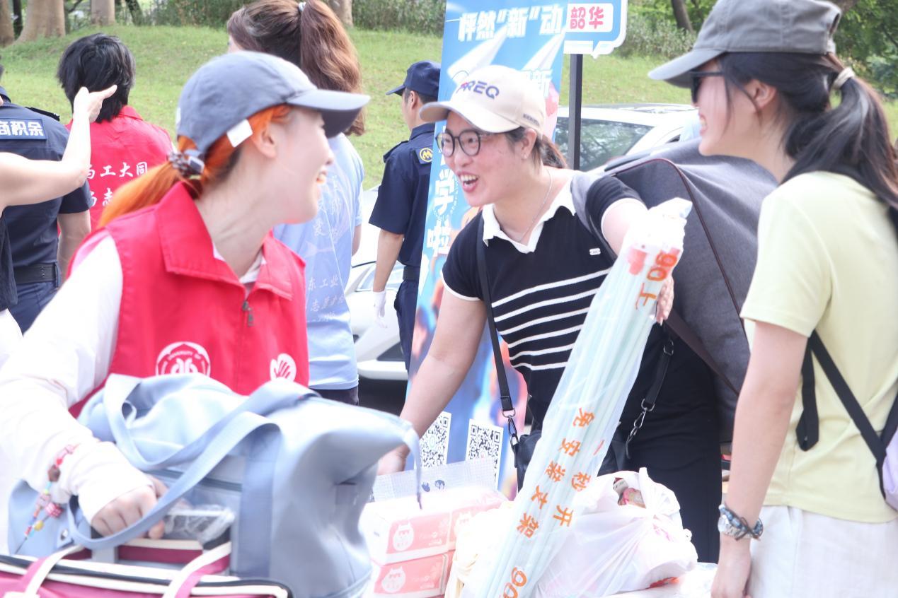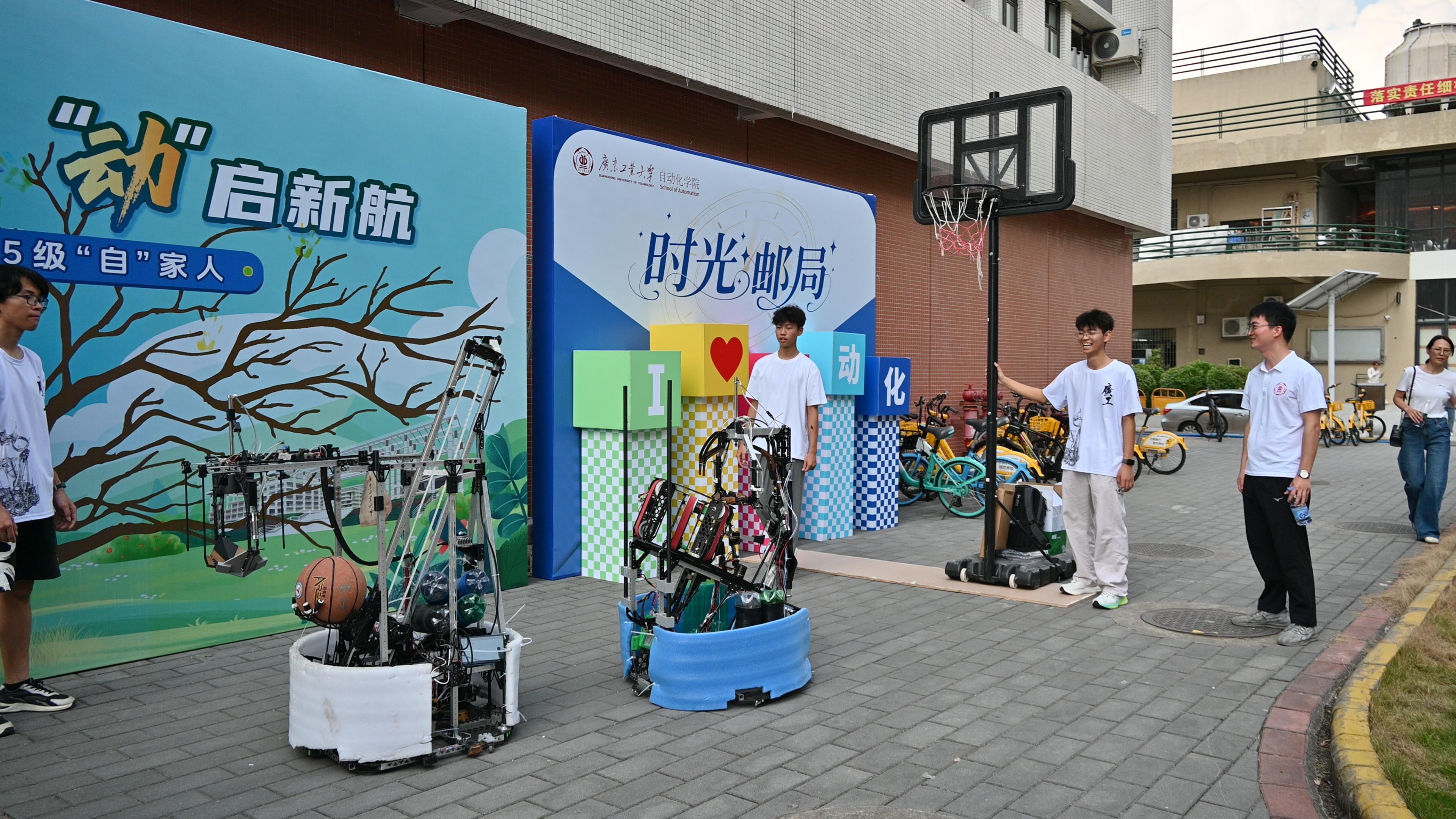 学院摊位也各显本领,学科梗、专业梗、校园梗、温情梗,创意层出不穷。自动化学院派出今年获国赛大奖的机器人现场投篮助阵;机电工程学院展示方程式赛车、机甲战队等,还设置了新生滚动许愿打卡点;计算机学院设计新生好运转盘,“代码零bug”“竞赛拿大奖”“绩点4.0”……引得现场阵阵欢笑;信息工程学院设置“报到手印按钮”,新生轻轻按下,一位“信”上人便闪耀登场;还有学院为新生赠送“逐梦”二字的书法相框,为新生和家长准备清凉绿豆沙解暑等。