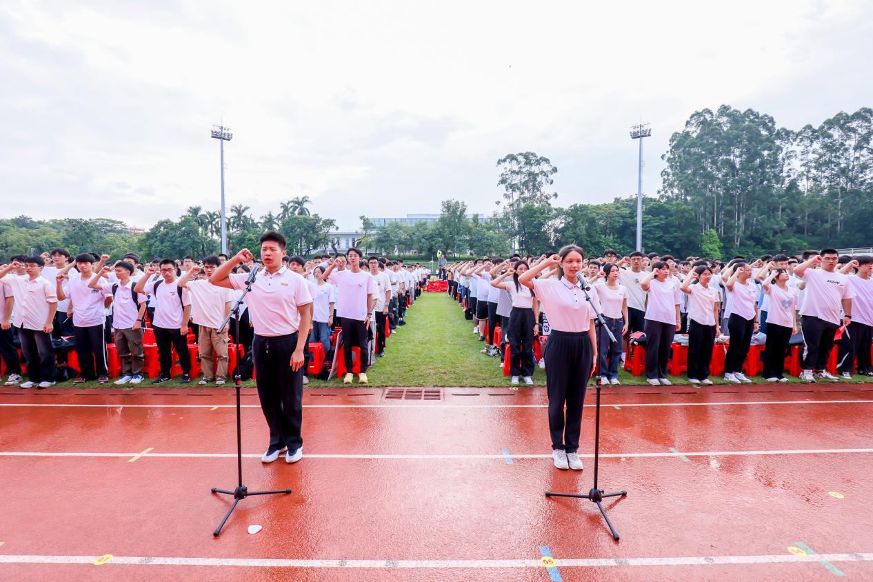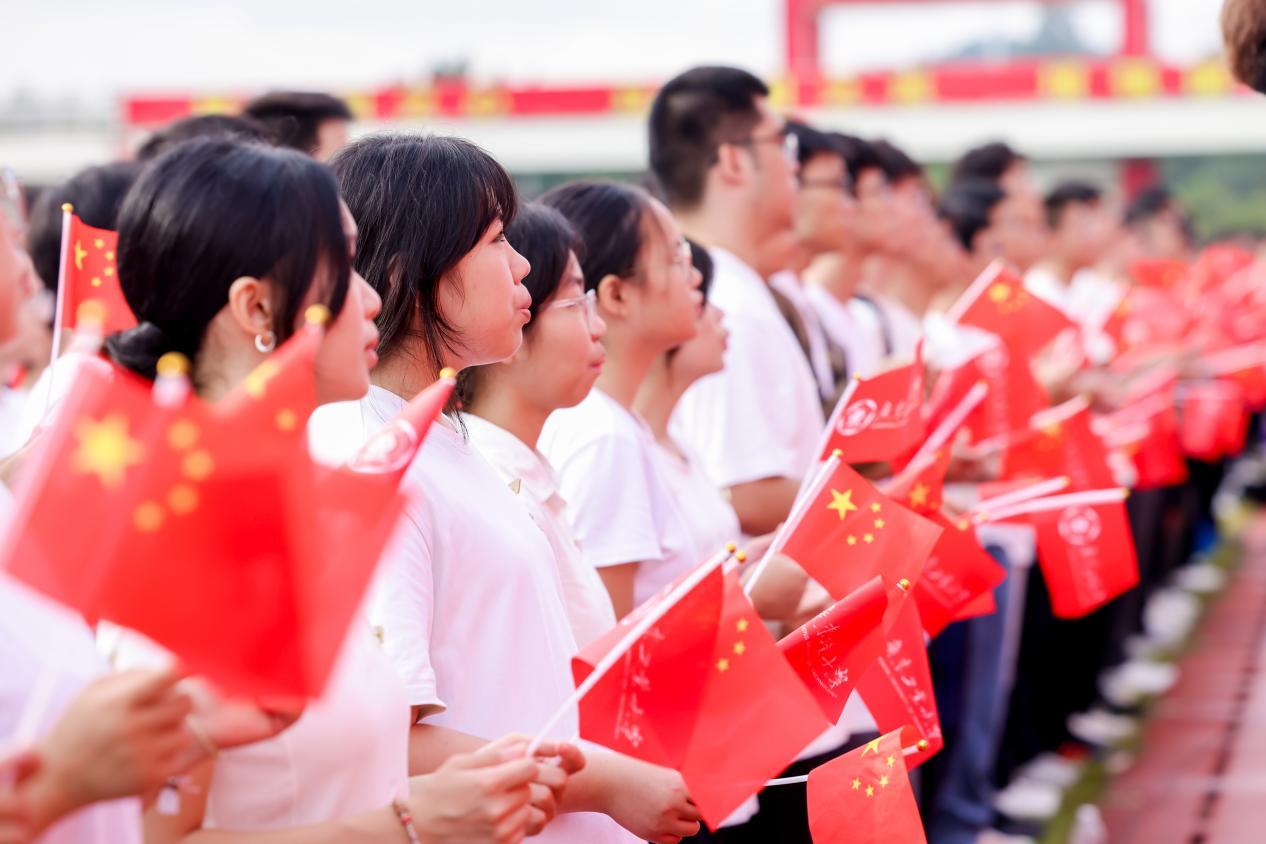 “风起岭之南,潮涌珠江畔。悠远钟声响,初心意气昂……”随着全场师生唱响校歌,开学典礼圆满落下帷幕。