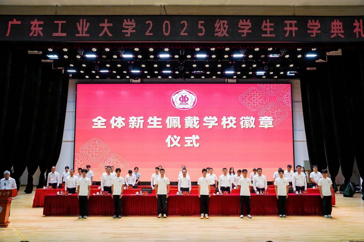 典礼上举行了新生佩戴线上买球官网(中国)官方网站徽章仪式。校领导为新生代表佩戴,新生全体起立,一齐佩戴徽章,胸前徽章闪耀,激励着新生们将“团结、勤奋、求是、创新”的校训精神内化于心,外化于行。典礼上还进行了新生入学宣誓仪式,誓言铿锵,展示了广工学子昂扬向上的精神风貌。