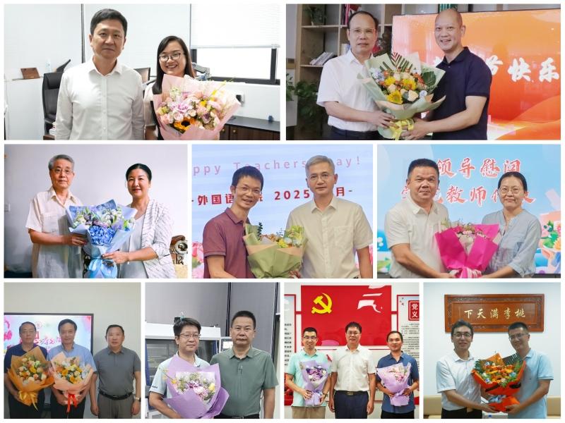 教师节期间,学校启动“教育家精神万里行”系列活动,学校领导走访慰问高层次人才、一线教师、辅导员和离退休老教师,党委教师工作部、人事处通过云端祝福为全体教职工送上定制节日短信,各单位举办表彰会、报告会、讲座等主题活动,以多元形式传递组织关怀,让尊师之风遍拂校园。