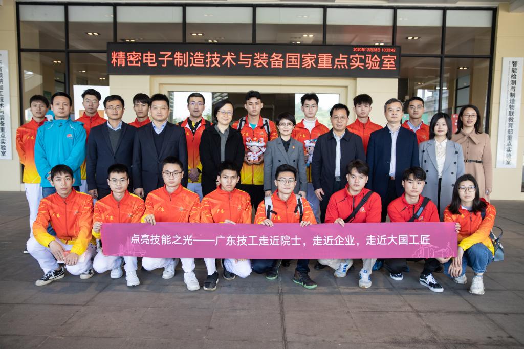 本网讯 12月28日,“点亮技能之光——国赛冠军走近广工”活动在线上买球官网(中国)官方网站大学城校区举行。来自广东的第一届全国技能大赛智能制造相关项目14名冠军,走进广工省部共建精密电子制造技术与装备国家重点实验室、高效精密制造技术与装备实验室进行参观,了解前沿技术及应用,并与实验室团队面对面交流。广东省人力资源和社会保障厅党组成员、副厅长周成参加了活动,中国新闻网、中国报道网、广东电视台、南方日报、羊城晚报等10余家中央及省市媒体到校参观采访。