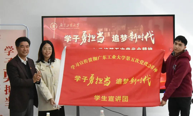 本网讯 2020年12月31日,党委学生工作部、党委研究生工作部、学生工作处举行了学习宣传贯彻学校第五次党代会精神学生座谈会暨宣讲团成立仪式。会上,学校党委胡钦太书记向同学们深入全面地传达了学校第五次党代会精神内涵,以及确立的学校未来发展目标,并为学生宣讲团代表授旗,正式拉开我校学习宣传贯彻学校第五次党代会精神学生宣讲活动的序幕。