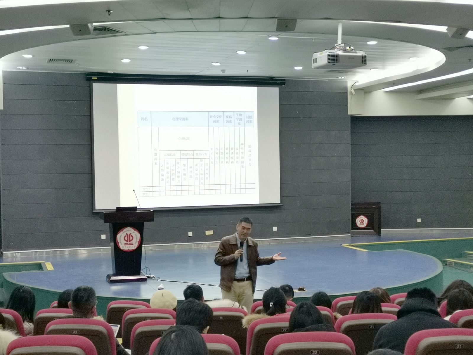 唐海波教授从四个层面开展大学生心理危机干预培训。一是由浅入深的阐述了在《中华人民共和国精神卫生法》的指导下,如何有效开展大学生心理危机干预工作,他用一个个生动的案例,重点诠释了一线人员如何在法律范围内及时进行干预、转介、办理住院等工作以及相关的注意事项。二是从心理学、社会文化、疾病、生物学及其他因素五个方面讲解自杀高危人群的识别,如何运用“应激-素质模型”提升危机识别和排查的有效性。三是结合丰富的临床经验,详细讲解了抑郁症病因、表现及诊断治疗。四是结合危机干预中的CISD技术,介绍了危机事件发生后对相关人群进行集体减压的必要性和重要性。