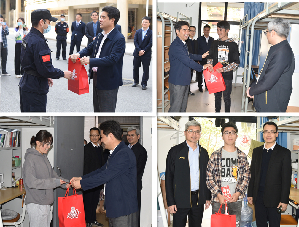 本网讯 “家乡虽然远在千里之外,但这里有老师的关爱陪伴,我感到无比幸福温暖!”2月3日上午,学校党委书记胡钦太,学校党委常委、副校长陈卓武来到学生社区,慰问寒假留校学生及坚守工作岗位的辅导员,为他们送上了新春大礼包,并致以新年美好的祝愿,让留校过年的同学们感到浓浓的年味和深深的乡情。