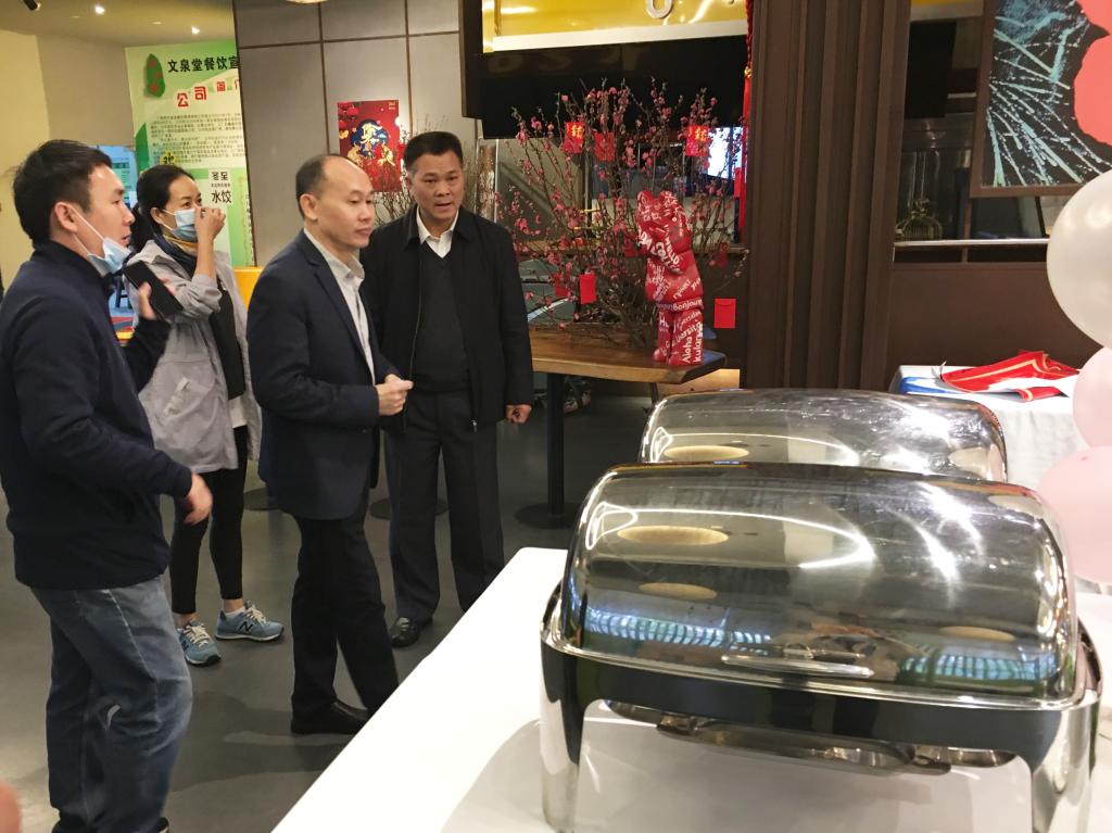 在大学城校区西四食堂年夜饭主会场,阳爱民详细了解了年夜饭的筹备进展情况,对年夜饭现场氛围布置做了具体指导。要求后勤管理处及各食堂负责人继续查缺补漏、完善细节流程,呈献给留校学生一桌丰盛的有浓浓年味的广工特色的年夜饭,让留校学生感觉到学校的温暖和关怀。