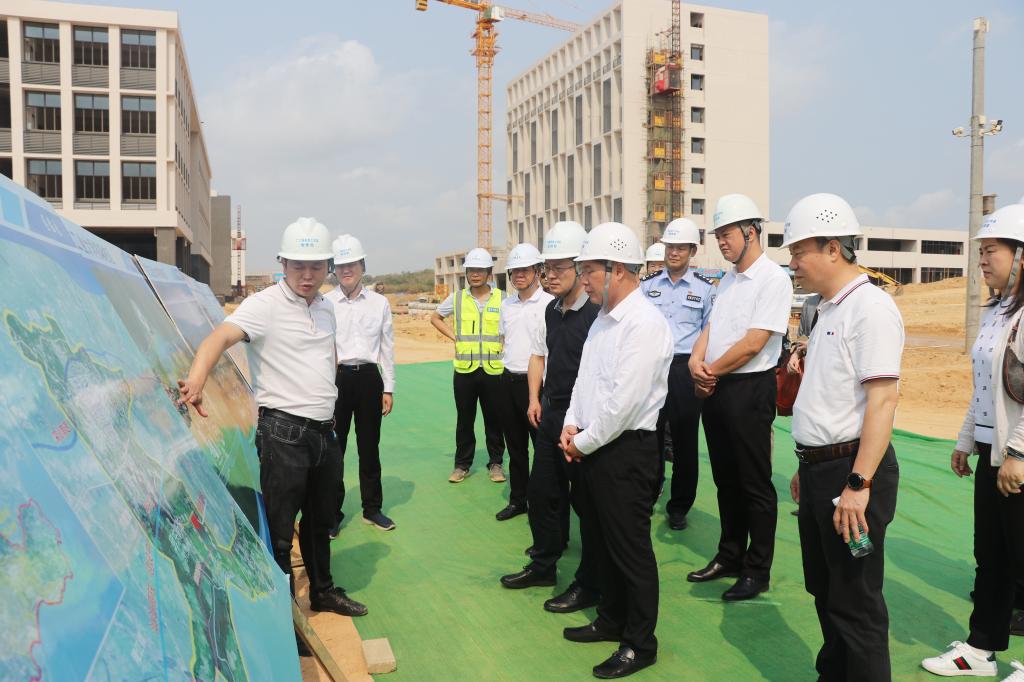 本网讯 4月2日上午,学校党委常委、副校长栾天罡率队前往揭阳校区首期工程建设指挥部,与揭阳市委常委、宣传部部长江林生共同主持召开揭阳校区建设工作现场会,研究建设工作进度安排,协调揭阳校区建设相关事宜,并到校园建设现场实地调研。