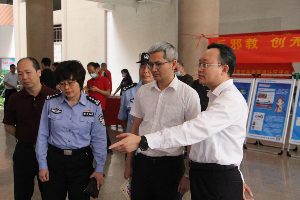 本网讯 4月14日下午,在第六个“全民国家安全教育日”来临之际,我校在东风路校区举行了“全民国家安全教育日”专题教育活动,广州市越秀区区委政法委联合越秀区公安分局走进我校东风路校区开展“反邪教宣传教育进校园”系列活动。学校党委常委、副校长陈卓武,党委保卫部部长、保卫处负责人,广州市越秀区区委政法委、越秀区公安分局、黄花岗街道办负责人,黄花岗派出所,以及艺术与设计学院、建筑与城市规划学院师生代表近300人出席活动。
