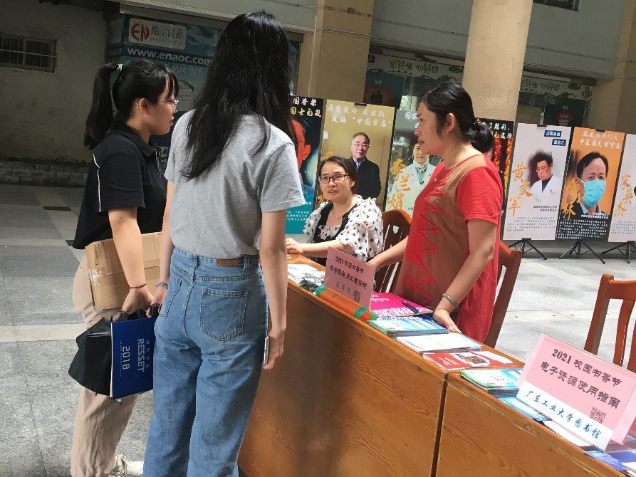 本网讯 4月23日是世界读书日,学校图书馆在大学城、龙洞、东风路校区举办了现场咨询活动,拉开“2021年校园书香节暨图书馆第十三届读者服务宣传月”活动的帷幕。