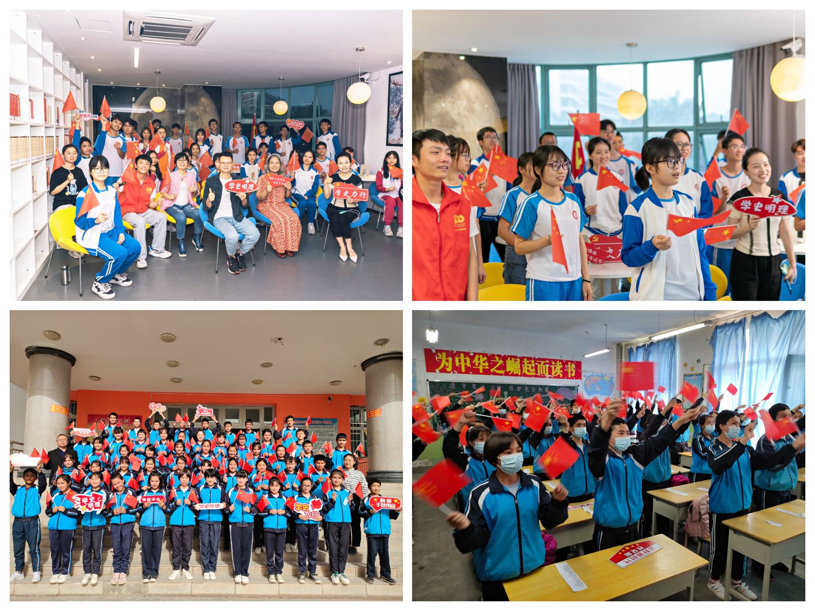 紧接着,曾喜密和温建林同学讲述“照片中的红色故事”,从学生视角讲好党的百年故事。活动在学生齐诵《少年中国说》中推向高潮,同学们个个精神抖擞,用清澈嘹亮的声音传递新时代青年学子爱党报国的决心。