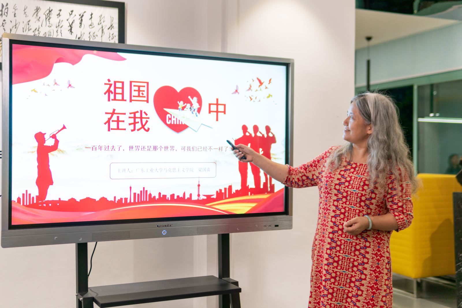 马克思主义学院梁国喜老师受邀担任课程主讲嘉宾。她以《祖国在我心中》为主题,深化“小切口、大情怀、正能量”的立意,用饱含深情的语言,鲜活的事例,将一幅幅可歌可泣的抗争史和波澜壮阔的奋斗史缓缓展现在师生面前。“同学们,当你听到中国、中国共产党、革命先烈、抗疫英雄,还记得你的情感体验吗?”授课过程中,同学们通过视频交流的方式进行亲切互动,同学们被生动鲜活的党史故事、感人肺腑的先烈事迹、深入浅出的精彩讲授所深深吸引,虽遥隔千里,缕缕爱国情通过同上党史课,在双方青年人的心间不断生长。