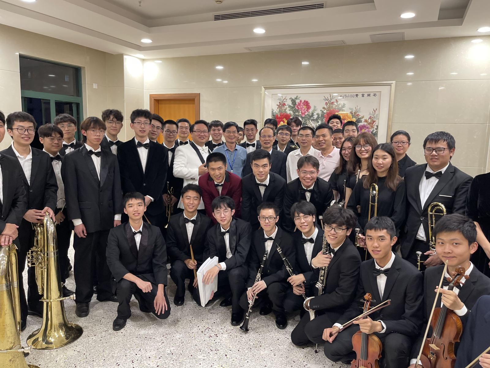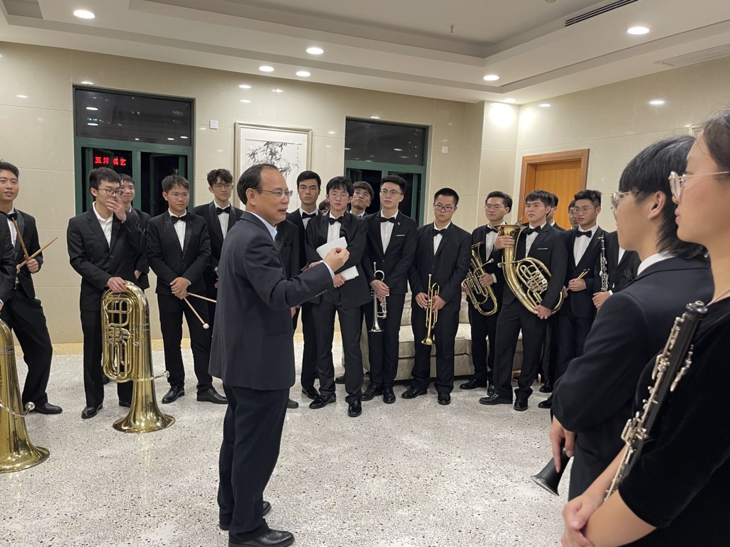 演出结束后,邱学青来到后场看望同学们,表达了对艺术团师生的重视和期望,给予学生们莫大的鼓励和信心,现场氛围活跃而轻松。同时,邱学青与师生们亲切交流,肯定了师生们对本次演出的努力,并希望学生们继续发扬我们广工大德智体美劳全面发展的优良传统以及敬业精神。