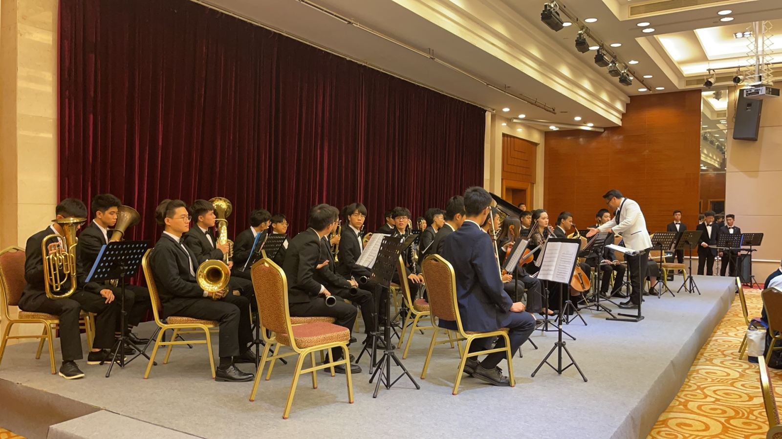 当晚活动在乐团指挥廖鸣辉老师的红色交响作品中拉开序幕。一首耳熟能详的《江山》,旋律优美动听,赞美了中国共产党为老百姓着想,为人民服务的根本宗旨;《长江之歌》,旋律激昂,气势磅礴,通过对中国的第一长河——长江的描写与赞美,让嘉宾感受到了中国人民热爱祖国的深厚情感。