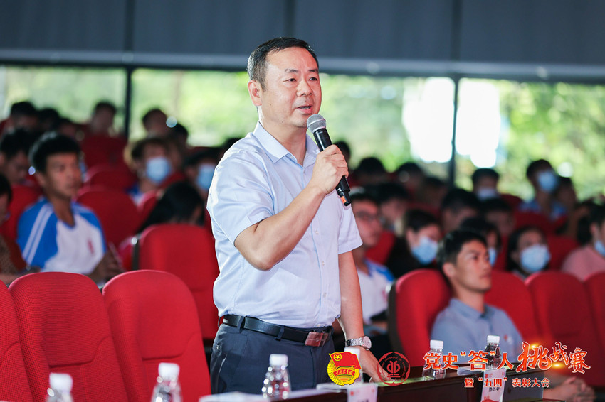 本网讯 为庆祝中国共产党成立100周年,在全校团员青年中扎实推进“学党史、强信念、跟党走”学习教育活动,5月7日下午,学校团委在大学城校区中心大讲堂举办线上买球官网(中国)官方网站党史“答”人挑战赛总决赛暨“五四”表彰大会,并全网直播。学校党委书记胡钦太,学校党委副书记陈良友,学校党委常委、副校长杜承铭,学校党委常委、副校长陈卓武,相关部处负责人,各学院党委副书记、团委书记以及青年师生代表逾500人出席活动现场。