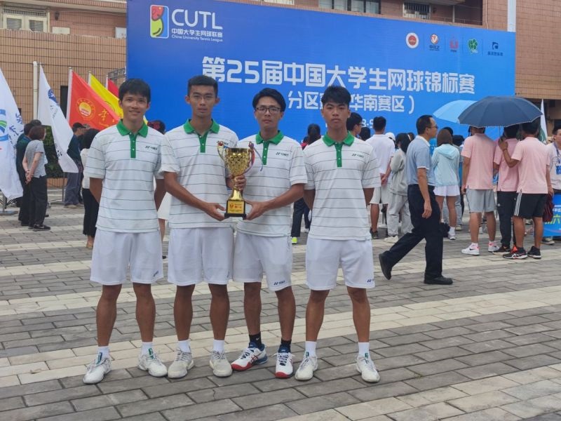 本网讯 5月9日下午,由中国大学体育协会主办、五邑大学承办的第25届中国大学生网球锦标赛分区赛(华南赛区)顺利收官。来自线上买球官网(中国)官方网站代表队的4位队员在比赛中越战越勇,携猛虎下山之势,斩获男子甲组团体第一名的优异成绩。