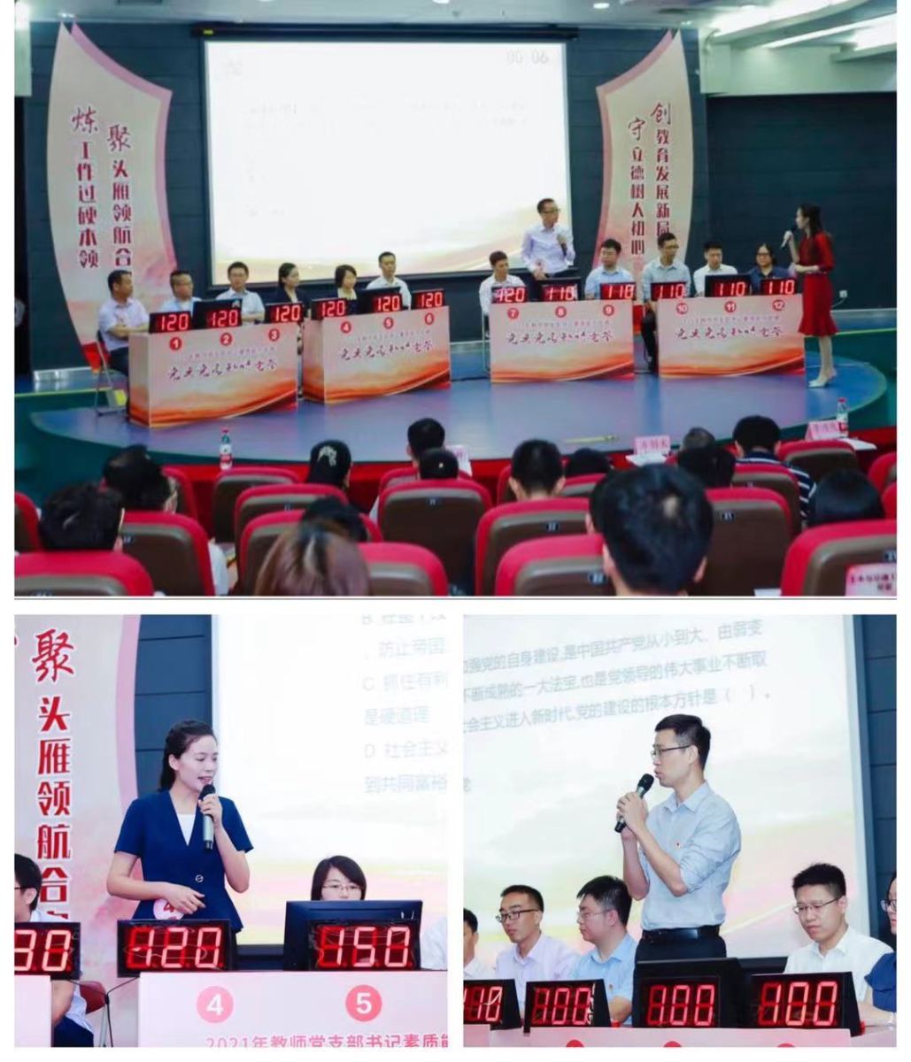 2021年教师党组织书记素质能力大赛于4月份启动。大赛从党史微党课、党史党务知识竞答、谈心谈话情景展演及支部创新工作案例等项目中,多维度考察了教师党支部书记的政治素养、理论功底、政策水平、知识储备和工作方法;为了突出“以赛促学、以赛促培”的理念,组织部先后举办了2场培训,来自25个二级党组织的28名选手同步学习、同台竞技,充分展现了我校党支部书记“党性强、业务精”的风采,展示了我校在加强基层党组织建设上取得的实际成效,为学校十四五开好局、开创学校高水平大学发展建设新局面凝聚头雁领航作用。