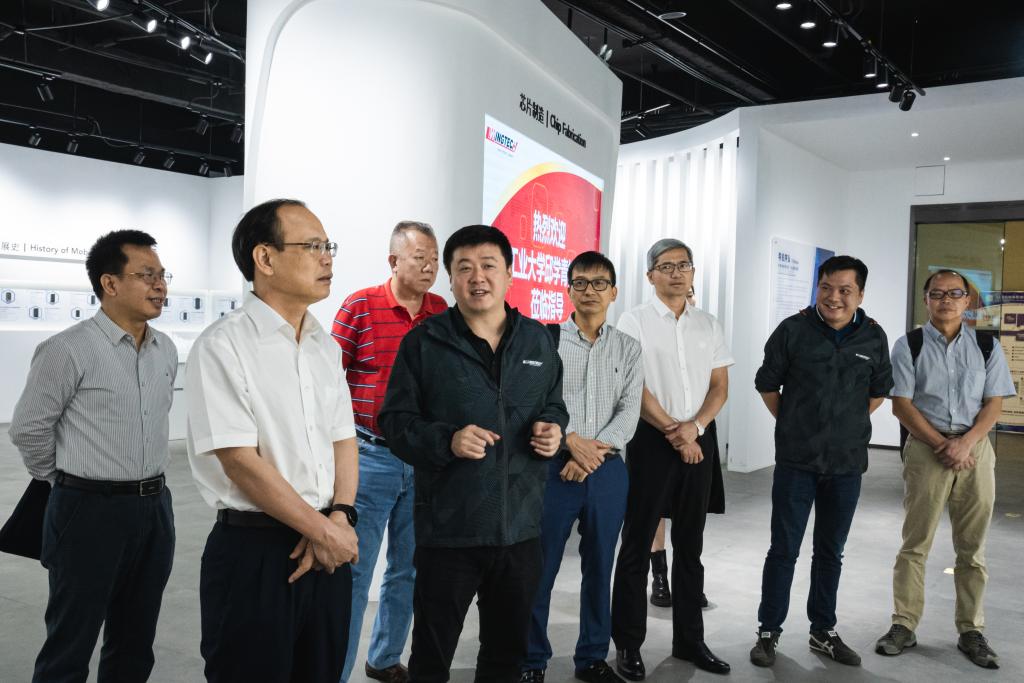 张学政校友对邱学青一行的到来表示热烈欢迎,在陪同参观了闻泰科技展厅和观看了相关视频后,介绍了闻泰科技股份有限公司发展历程、所取得的业绩、远景规划和行业未来发展趋势,并期盼进一步加强与母校交流与合作。