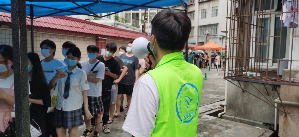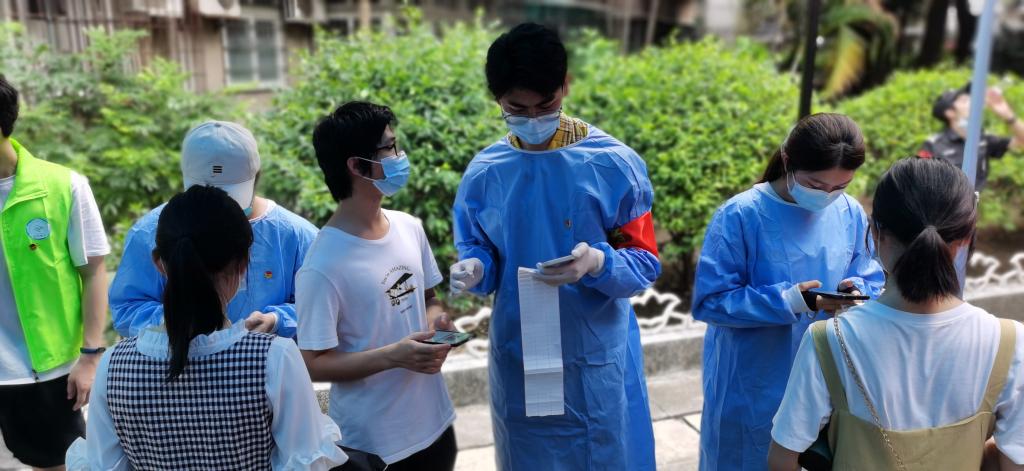 本网讯 5月30日,越秀区拉响全区全员核酸检测的战疫号角,开始了为期三天的全区核酸检测。在检测首日接到社区组织核酸检测的紧急通知后,线上买球官网(中国)官方网站迅速部署,组织位于越秀区的东风路校区师生员工近4000人开展核酸检测。东风路校区学生志愿者第一时间与所在社区取得联系,踊跃报名。50余名志愿者前往街道核酸采集点协助开展检测工作,累计服务时长超500小时,让党旗在抗疫一线高高飘扬。
