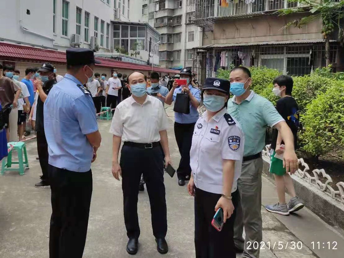 副校长阳爱民在检测现场指导开展工作,查看每一处现场细节,并慰问参与核酸检测的学生志愿者与工作人员。
