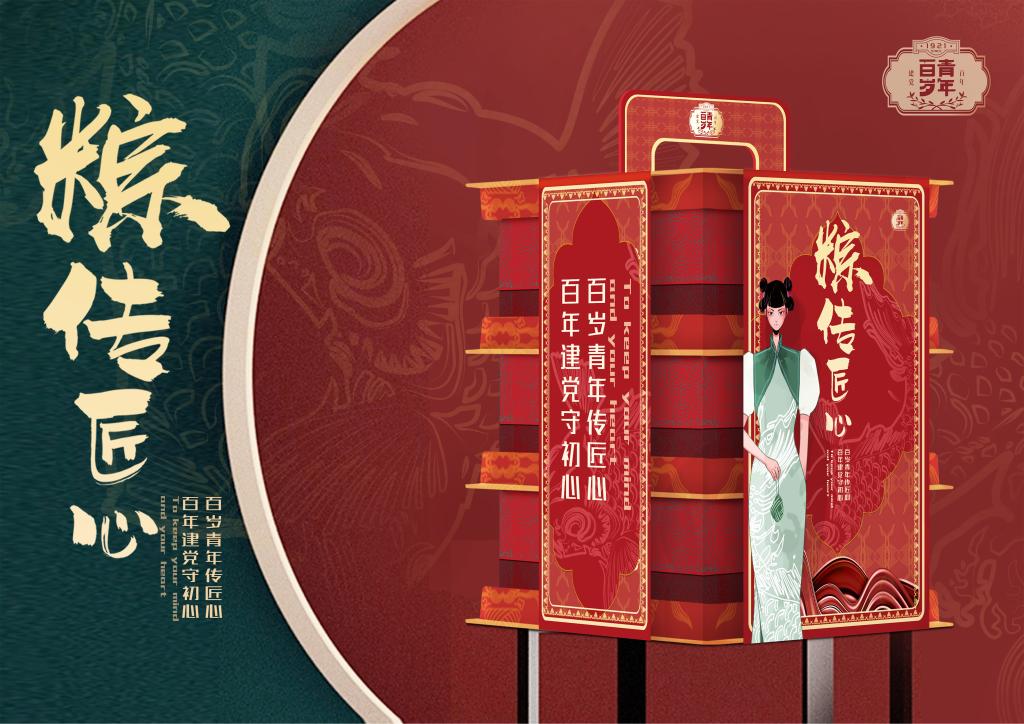 在“红色传承”专题中,可以走进油画世界,在画中的那盏油灯,那枚锈迹斑斑的纪念章里追寻那段抗争的记忆;也可以观赏红色主题的包装、服饰、展厅设计,体味红色文化的叙事演绎;同时还有备受年轻人喜爱的三维动画、体感交互投影等新媒体作品,沉浸式体验红色文化的精髓。