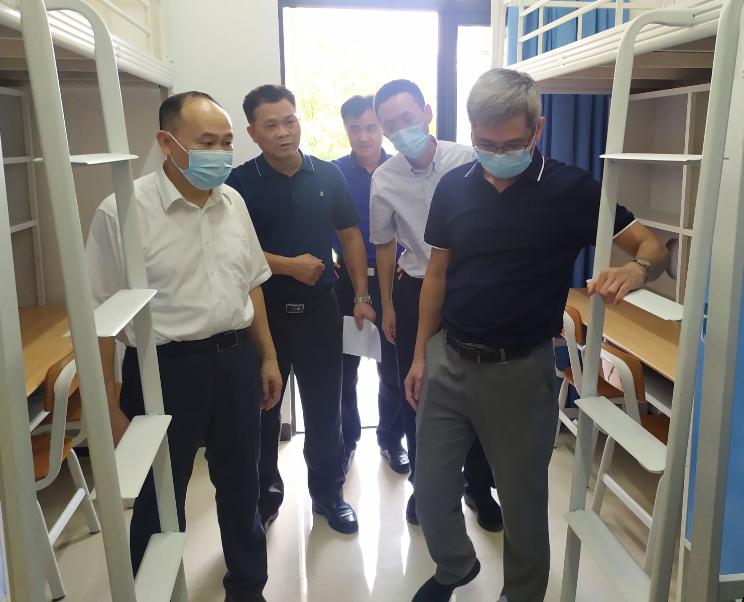 在学院检查时,各学院负责人汇报了学院对照落实开学疫情防控工作清单自查情况,包括制度建设、工作机制、师生管理、宣传教育、应急处置等方面情况。校领导充分肯定各学院落实疫情防控的举措和亮点。要求一要“严”,严格落实上级最新疫情防控制度、方案和工作指引;二要“明”,弄清本学院师生“三本台账”,提升师生疫苗接种率;三要“归”,学院疫情防控资料要归档,建立工作台账和记录;四要“快”,对上级疫情防控文件精神要快速反应,及时更新防控方案和应急预案;五要“思”,经常思考总结,查缺补漏,完善疫情防控措施。