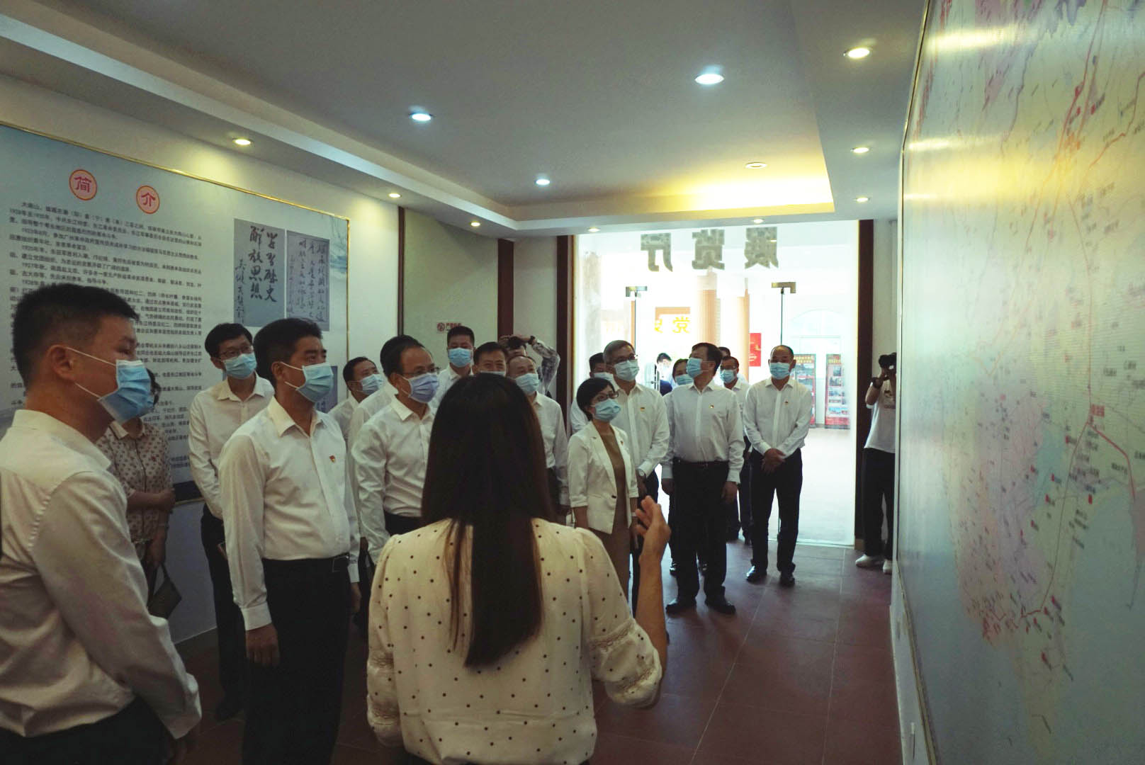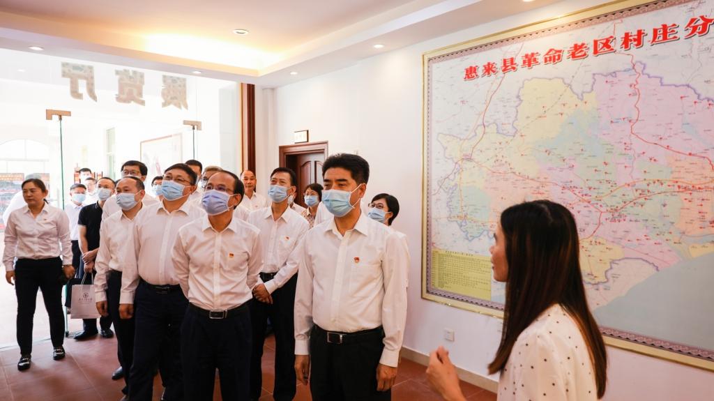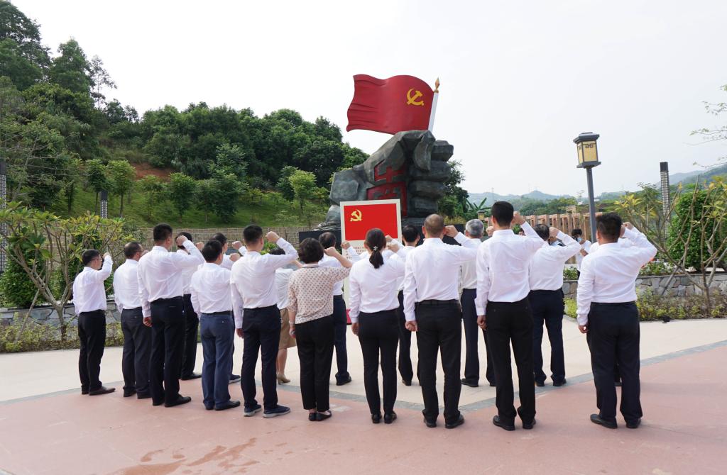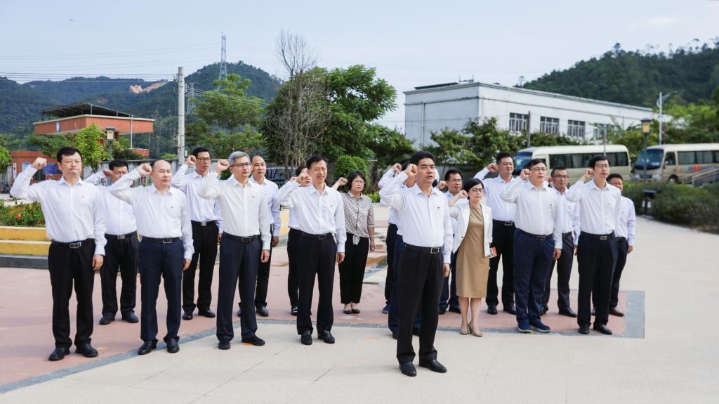 在讲解员的讲解下,校领导一行通过观看文史资料、聆听革命故事,深入了解了革命时期、土地革命时期、抗日战争时期、解放战争时期,周恩来、陈毅、郭沫若、贺龙、彭湃、叶挺、古大存等革命前辈及大南山党政军民在惠来大南山革命根据地开展革命斗争的光辉历程,深刻感受到中国共产党人矢志不渝的理想信念和坚持不懈的奋斗精神。一件件革命文物,一张张历史照片,让大家受到了一次深刻的党史党性教育和革命传统教育。随后,校领导一行来到大南山革命纪念广场,在校党委书记胡钦太的带领下,面向党旗重温入党誓词,表达对中国共产党的绝对忠诚和为共产主义奋斗终身的坚定决心。入党誓词,是每个共产党员对党和人民做出的庄严承诺,在大南山革命纪念馆,在即将落成启用的揭阳校区所在地重温入党誓词,更是有着特殊的意义,全体广工人将不忘初心、牢记使命,一往无前地坚定信心、奋发有为,开启揭阳本科高等教育的新征程。