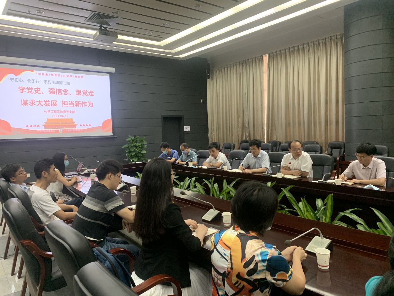学院党委注重党史学习教育与教学、科研工作、群众实事相结合,以党史的智慧和精神力量激励全院师生党员科技报国、实现自我价值。党员教师积极开展教学改革、一流课程资源建设、专业工程认证中期检查、编撰教材;指导学生参加各类学科竞赛获得省级以上奖项10余项;成功申报国家科学基金18项,位居学校前列;1名党员老师获批教育部高层次人才青年项目;2017级化学工程与工艺2班团支部荣获“全国五四红旗团支部”。优化提升支部阵地,制度上墙、支部介绍,打造精品支部活动场地建设。在工学四号馆建设“教工之家”,给予教工更充分的人文关怀,让教工更加有归属感。精心组织党员慰问工作,对困难和特殊贡献党员提供有力帮扶,将群众“急难愁盼”的问题落实到实处。