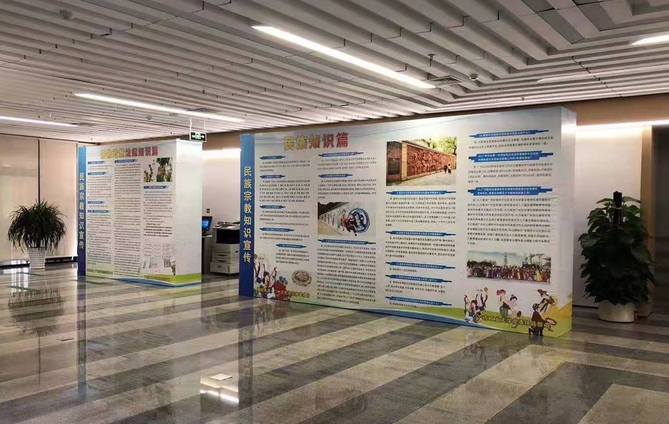 同时,为了扩大学习宣传的覆盖面,学校党委统战部与图书馆共同策划了民族宗教知识宣传展,于9月29日—10月20日分别在大学城校园图书馆二楼、东风路校园图书馆一楼展厅门口和龙洞校园教学楼一楼电梯口展出。