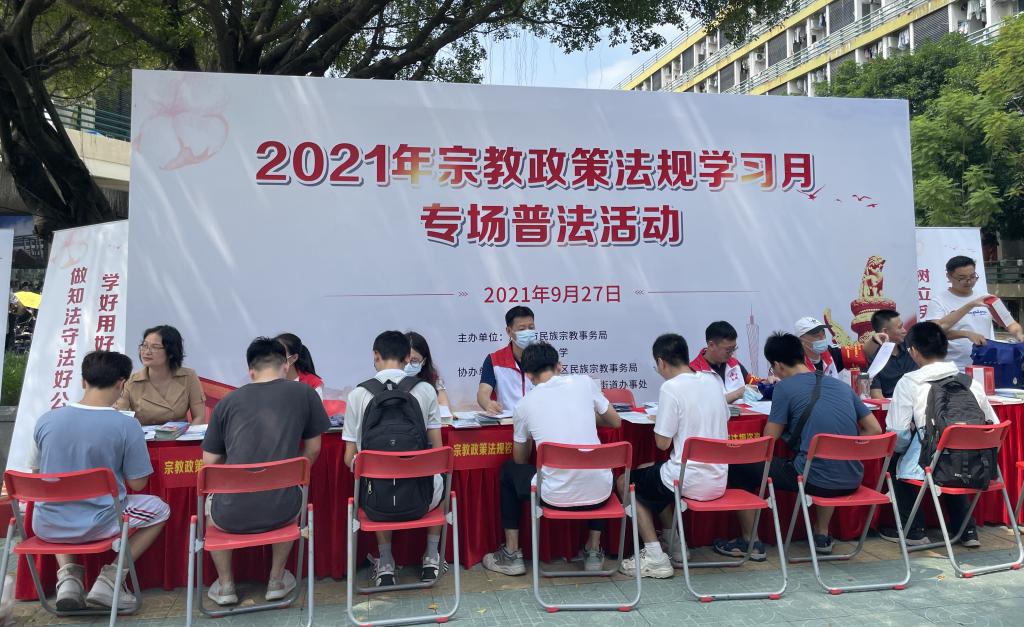 活动期间发放了《习近平总书记关于民族宗教工作系列重要论述摘编》《宗教事务条例》《广东省宗教事务条例》等宗教政策法规宣传资料,并开展宗教政策法规宣传咨询和宗教政策法规知识有奖答题等活动,师生通过咨询答题进一步熟悉和掌握宗教政策法规知识。