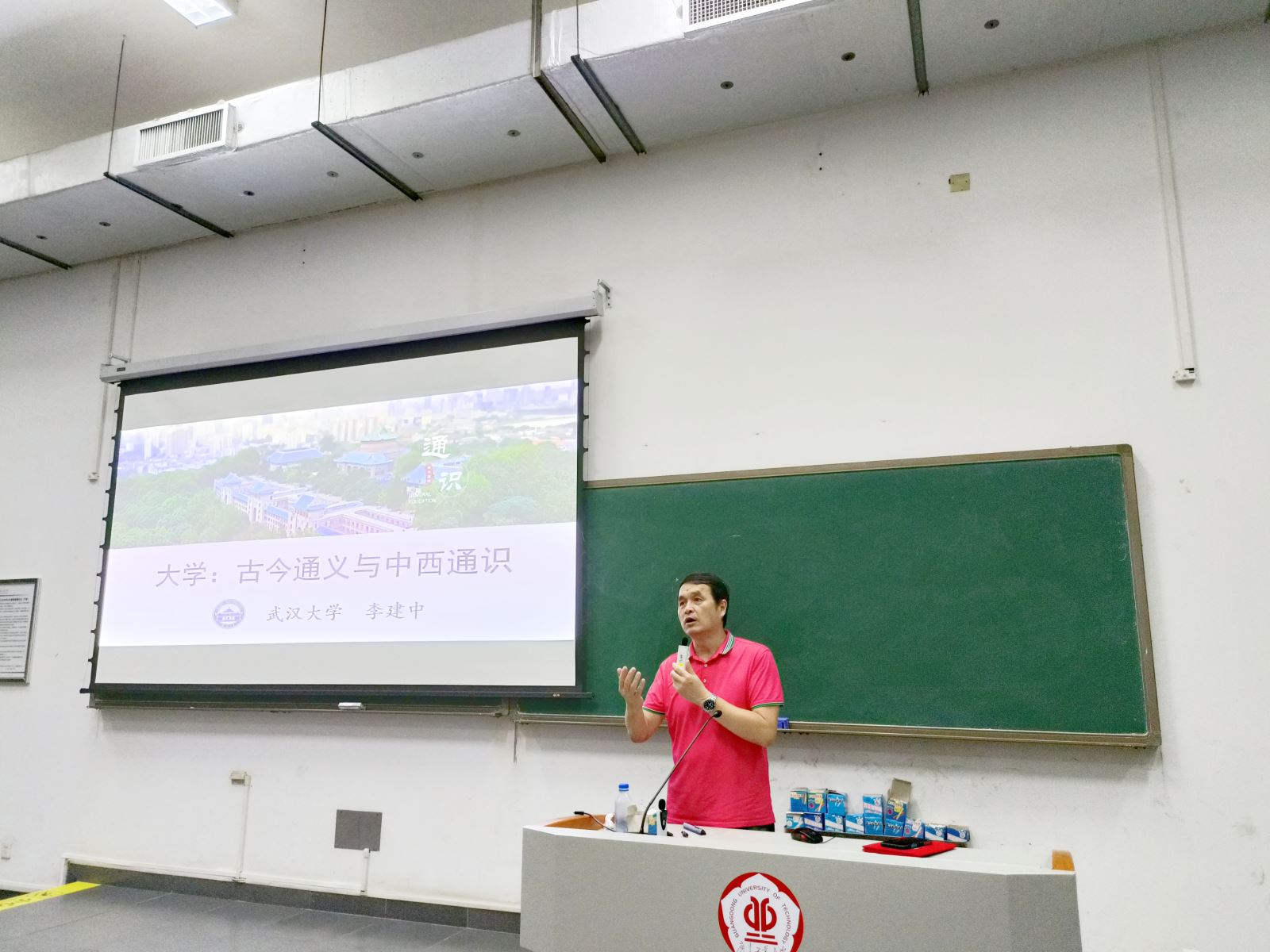 随后,李教授大量引据经典,讲解古典之“通”。表示孔子贯二帝三王而同为一家,总诗书礼乐而会一手。借用《庄子·天下》《礼记•学记》《大学章句序》等经典文学说明了学术有道术和方术之分,做学问应超越方术,追求道术,在教育上实行有教无类,以圣育人的道理。