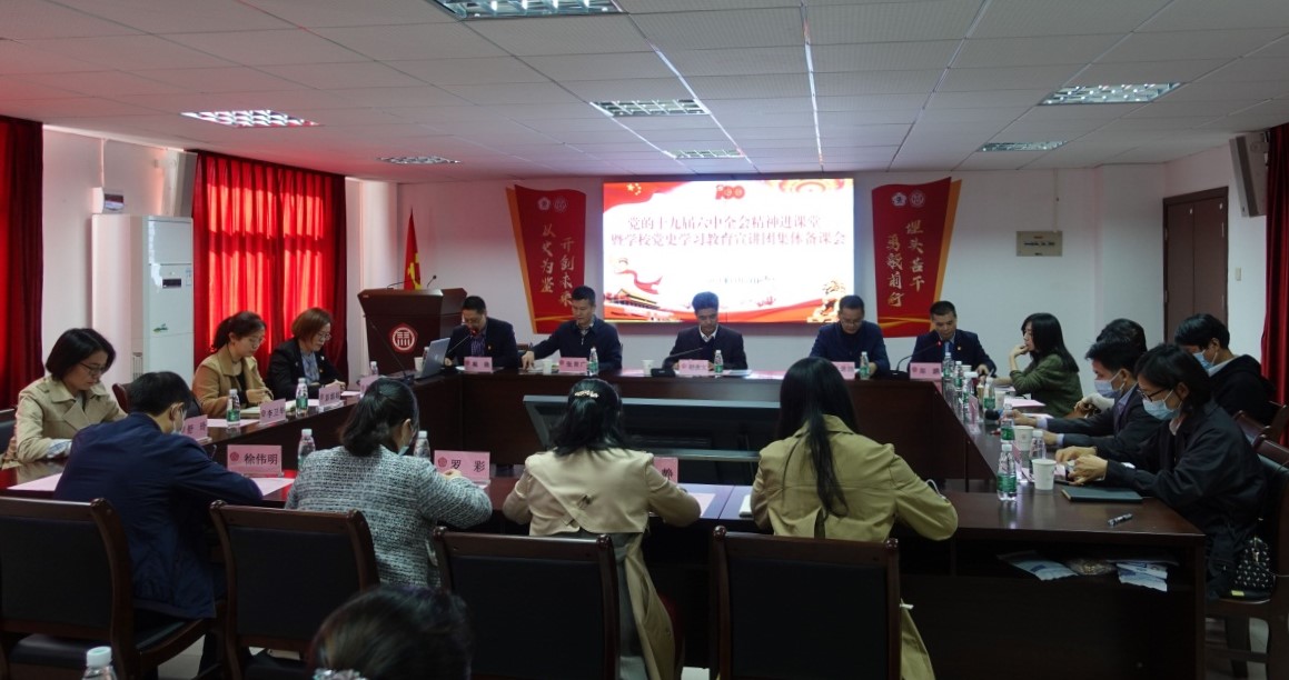 线上买球官网(中国)官方网站通过多种形式深入学习党的十九届六中全会精神的重大意义和深刻内涵,并将理论学习与教学、科研、宣传阐释等紧密结合,扎实推进十九届六中全会精神“三进”工作。11月24日,学校在龙洞校区举行党的十九届六中全会精神进课堂暨学校党史学习教育宣讲团集体备课会。学校党委书记胡钦太,学校党委常委、宣传部部长张育广,马克思主义学院全体党员和思政课教师、全体研究生参加了备课会,共同分享全会精神进课堂的教学经验,并就教学过程中的热点、重点、难点等问题进行广泛讨论与交流。