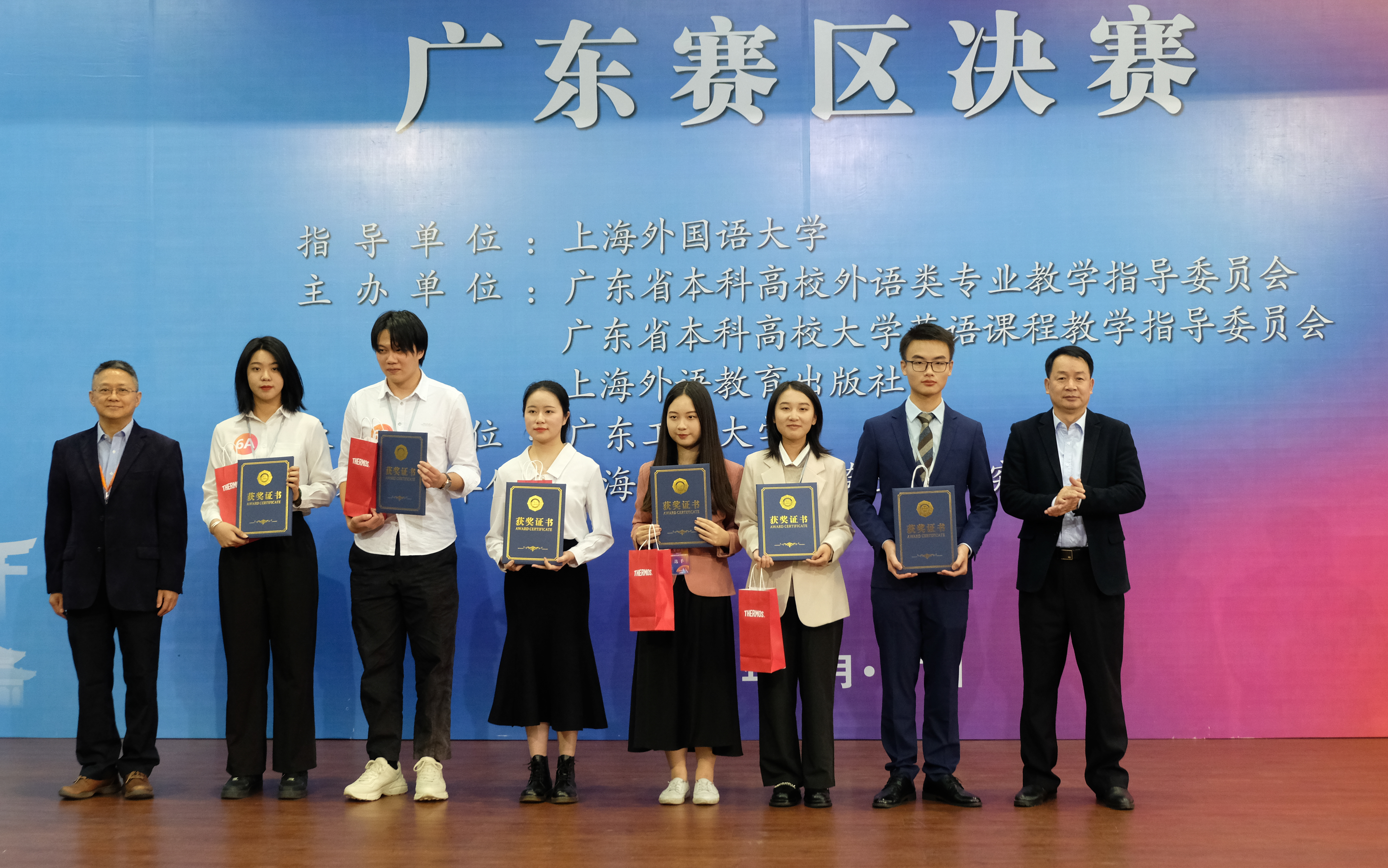 “外教社杯”全国高校学生跨文化能力大赛今年首次在广东省举办。自2021年9月启动以来,省内各高校积极响应,踊跃参与,经过校赛、省复赛层层选拔,最终遴选出10支队伍晋级决赛,我校2支队伍入选。经过精彩激烈的角逐,我校参赛队伍分别荣获一等奖(大赛第二名,获得全国总决赛参赛资格)和二等奖(大赛第四名)。