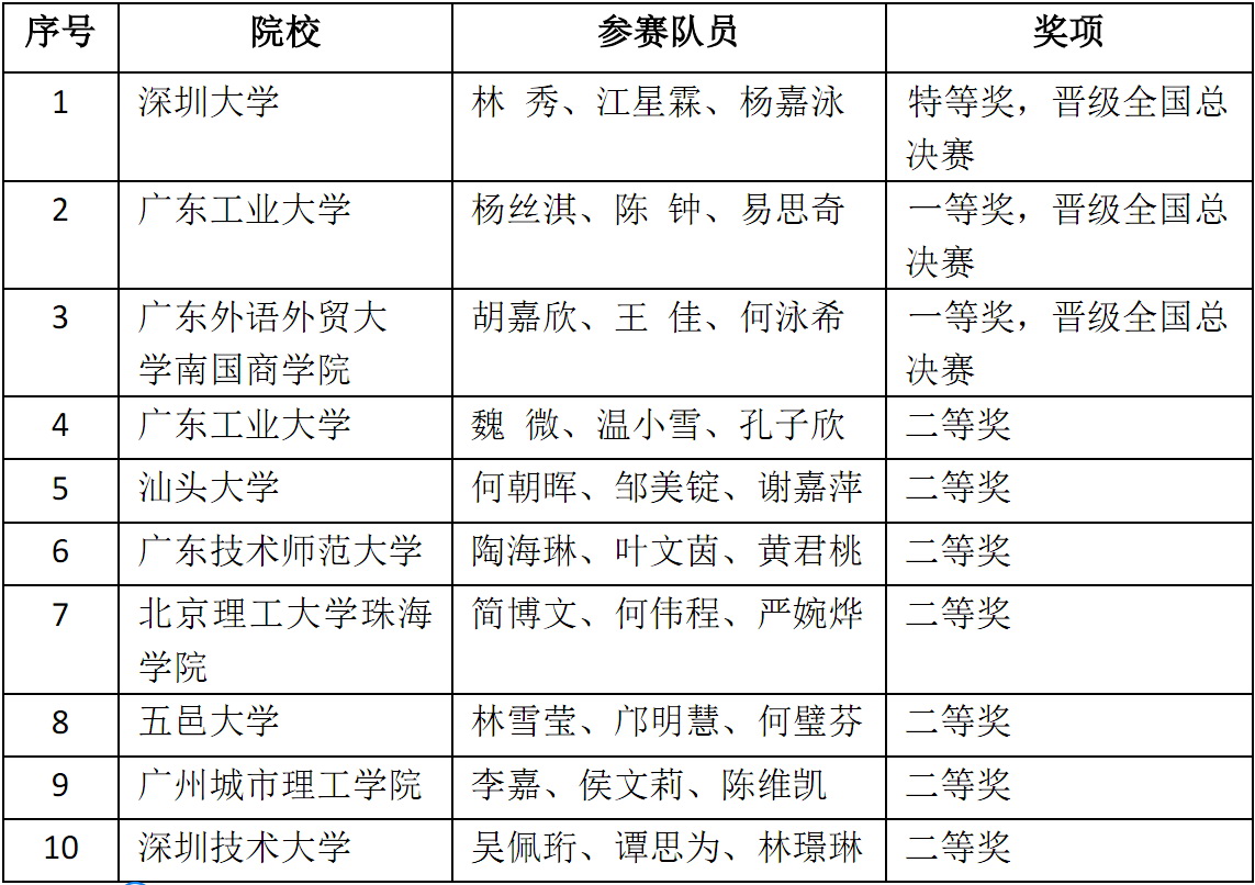 第四届“外教社杯”全国高校学生跨文化能力大赛广东赛区决赛获奖名单