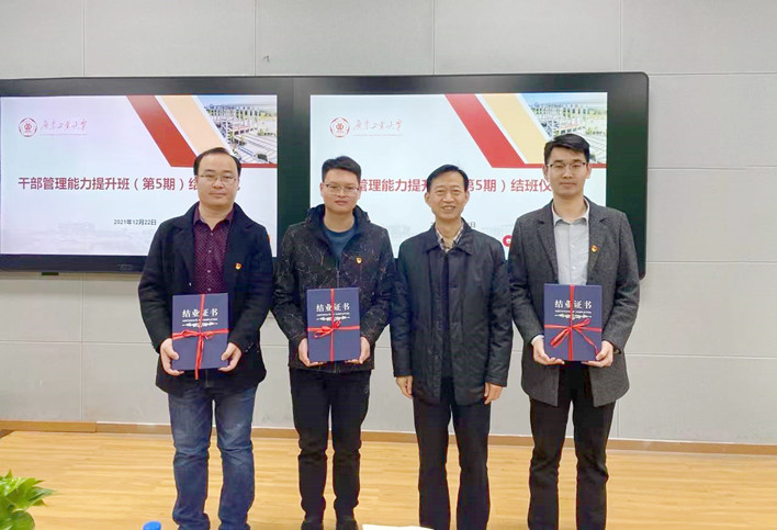 12月22日下午,第5期干部管理能力提升班结班仪式在大学城校区举行。与会领导与全体学员进行了学习培训总结回顾,学校党委副书记陈良友为学员代表颁发了结业证书。