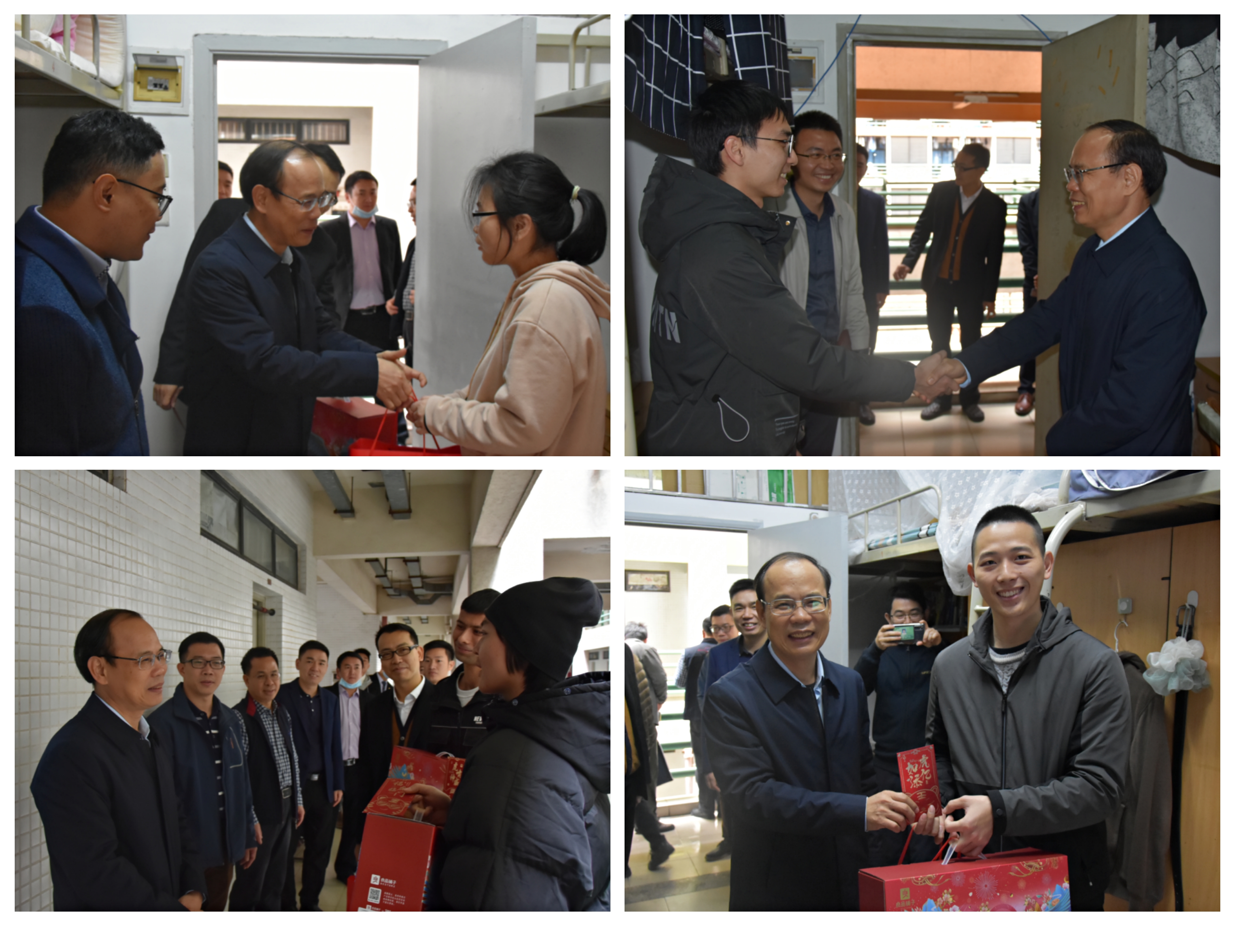 春节将至,情暖冬阳。1月25日上午,校长邱学青在党委办公室、校长办公室、学生工作处、保卫处、后勤管理处、团委等部门负责人的陪同下,走访慰问了寒假留校学生,给学生送去了学校的深切关怀和新春的美好祝福。