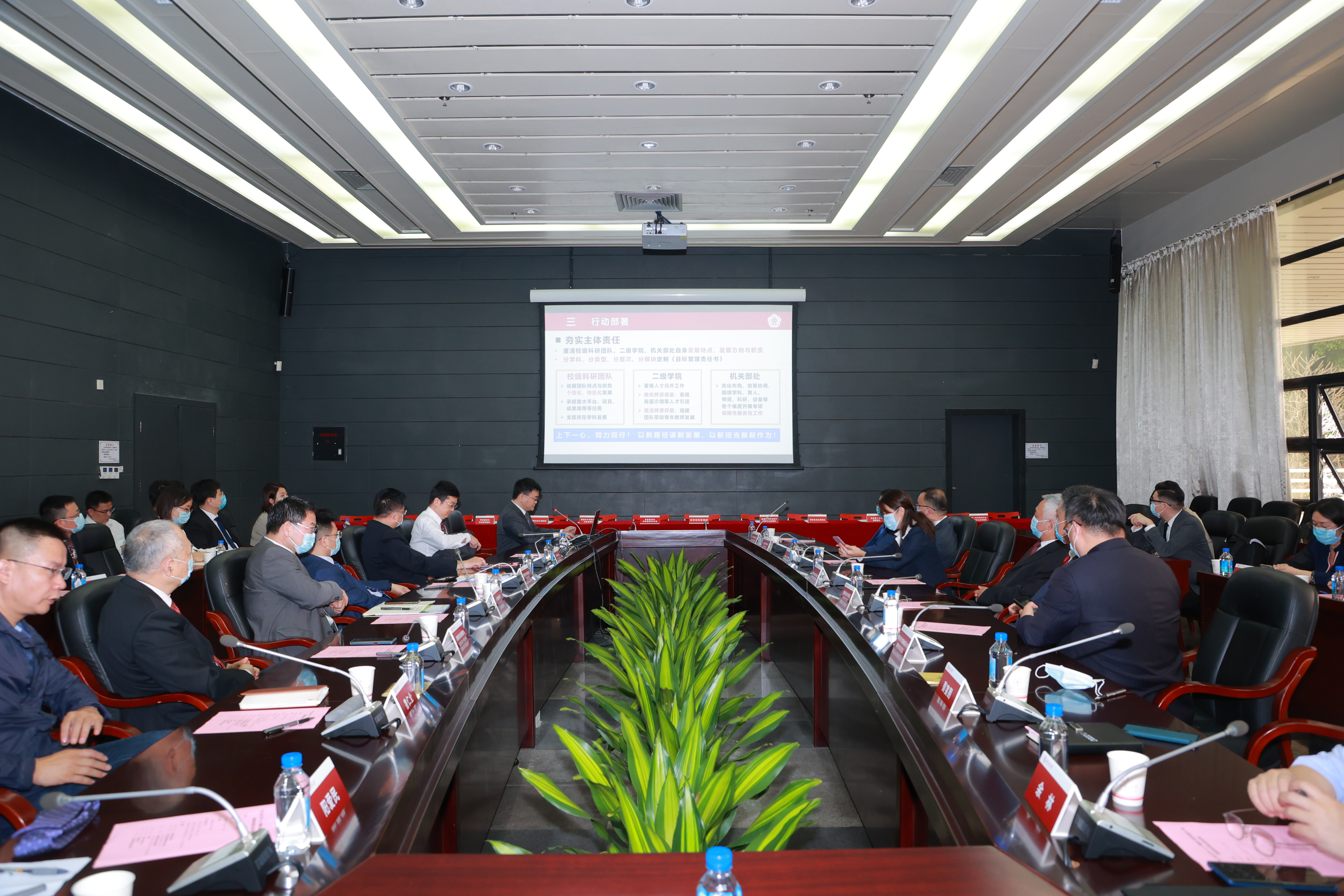 邱学青对经过层层评审、遴选出的29支校级科研团队表示祝贺,感谢团队为学校快速发展所付出的努力。他表示,科研团队是学校学科建设的“主力军”,是学校“高峰的象征、科研的脊梁”。学校将在资金、政策方面给予倾斜与支持,希望通过3年建设,各团队能在重大项目、重大成果、重大平台、高水平论文、国家级高层次人才及青年人才培养、成果转移转化等持续突破,推动学校科学研究和人才培养水平加速提升,不负重托,勇攀高峰,争创一流。