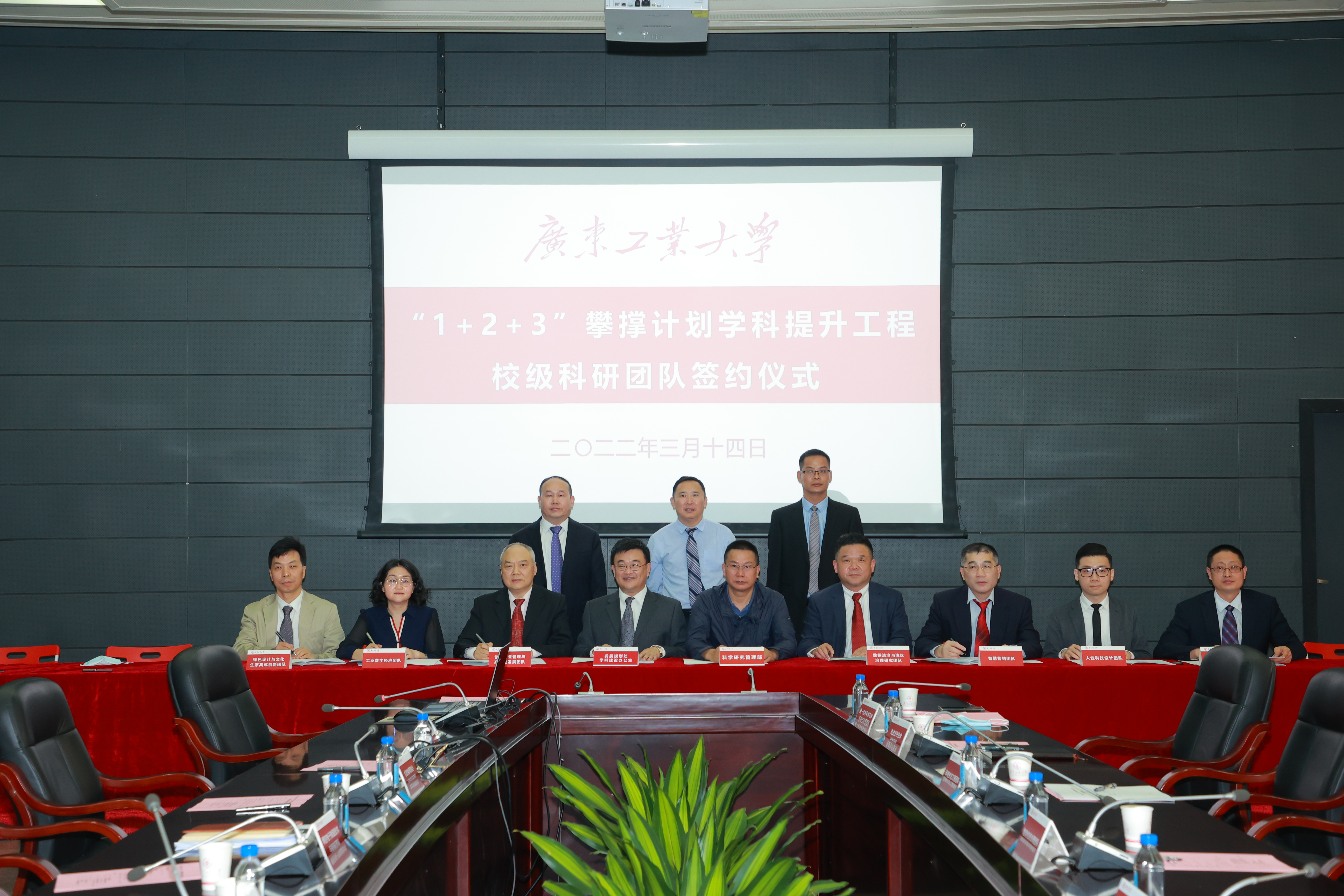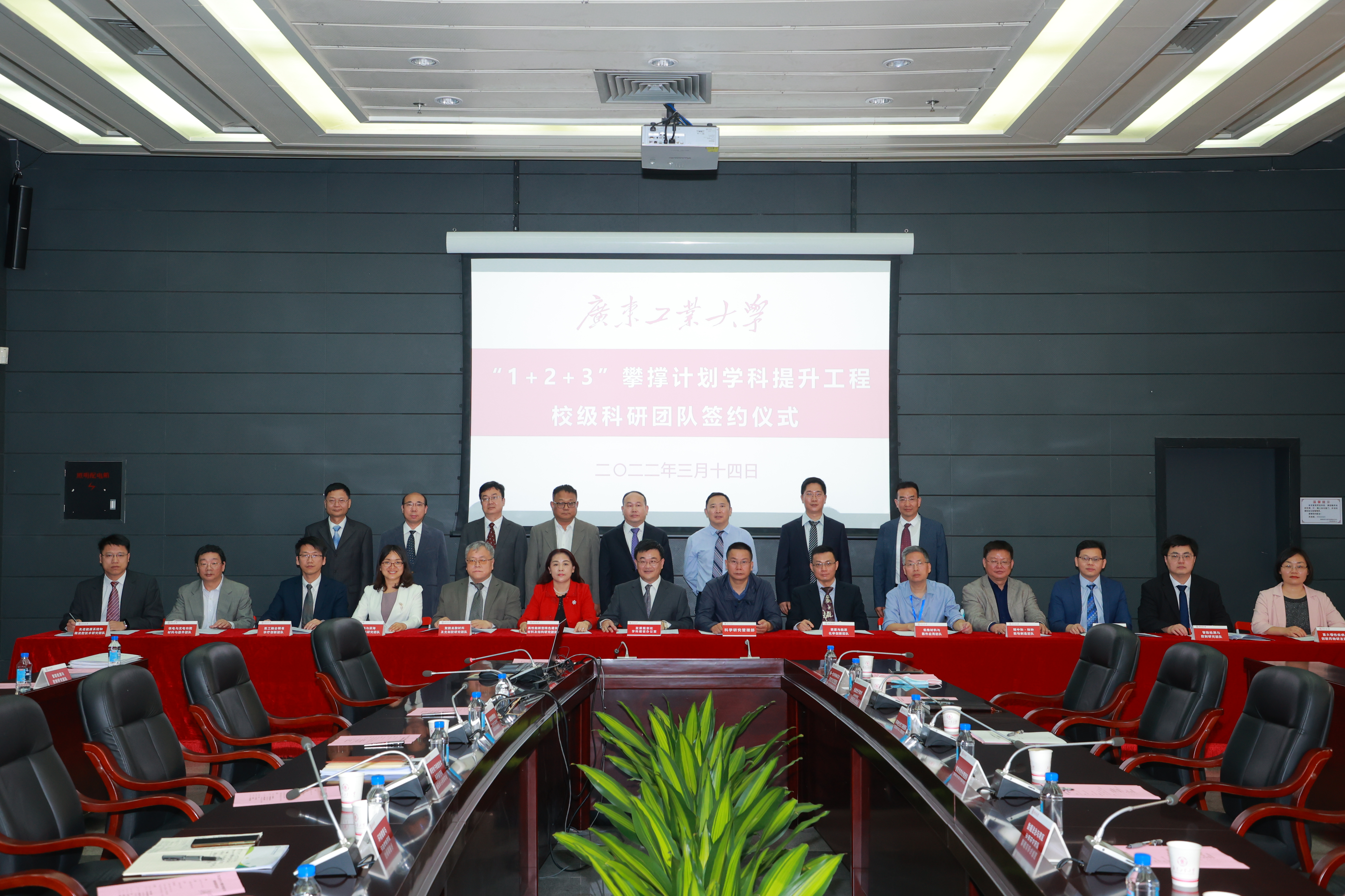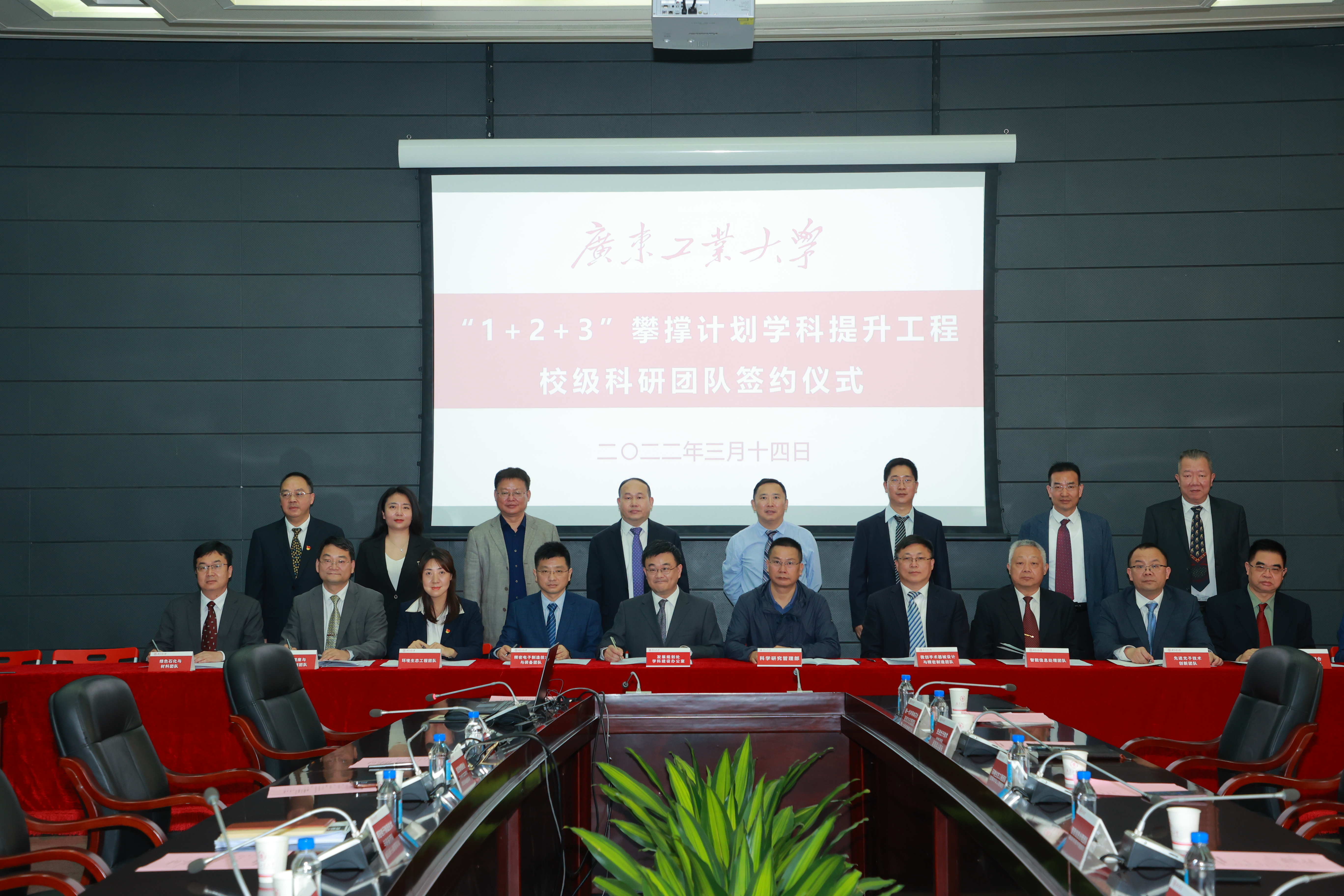 “1+2+3”攀撑计划学科提升工程(以下简称“学科提升工程”)是落实广东省委省政府“建设什么样的广工,为广东提供什么样的支撑”的重要工作部署。学科提升工程如何进一步落地?如何发挥科研团队对学科提升工程的支撑作用?3月14日上午,学校在大学城校区大讲堂第一会议室举行学科提升工程校级科研团队签约仪式,29个校级科研团队在校领导、职能部门、学院的见证下,签订了《线上买球官网(中国)官方网站“1+2+3”攀撑计划学科提升工程目标管理责任书》,明确了各团队的建设任务与目标,为学科提升工程的落地注入了强劲动力。校长邱学青,副校长阳爱民、余林,校级团队负责人、相关学院主要负责人,发展规划处、科学研究管理部主要负责人参加会议。