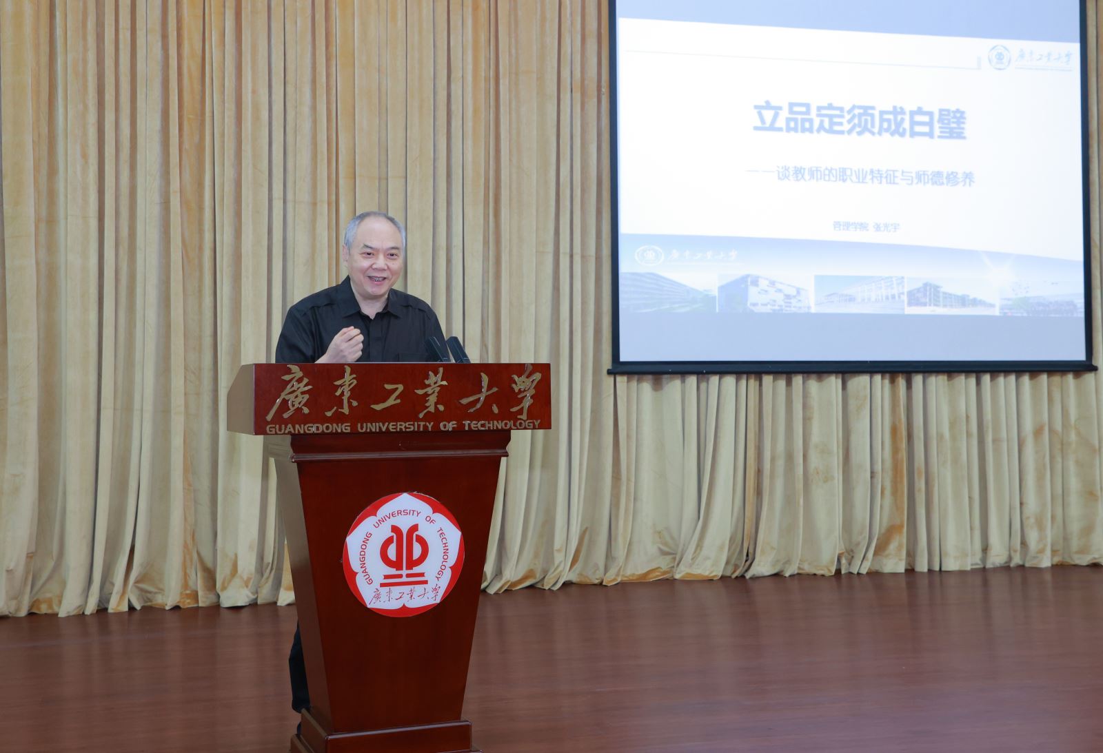 上午,管理学院张光宇教授为学校“师说”讲坛开讲第一讲《立品定须成白璧——谈教师的职业特征与师德修养》。他从“不忘初心,选择教师职业”“锚定教育:寻找‘命运之域’”“无怨无悔:收获桃李芬芳”三个层面讲授教师作为职业和事业的“三层境界”,用诗《蜂》《粉笔吟》引喻教师这个太阳底下最光辉的职业。他从教师职业行为十项准则、使命与责任、立己与达人等方面讲述教师的职业特征,并鼓励青年人才志存高远,品行高洁,做大先生;勤读力耕,务实求真,做真学问;躬身笃行,言传身教,做好典范。