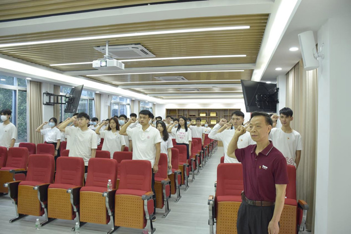 随后,即将到香港大学继续深造的李俊霖同学作为毕业生党员代表发言。他以“建功新时代,筑梦广工人”为题回顾了在广工求学的美好时光,并号召全体毕业生党员要坚定理想信念,不负时代所托;牢记党员身份,不负人民所愿;锤炼自身本领,不负青春所盼。新发展党员代表麦柏川同学承诺会以中流击水的劲头和舍我其谁的精气神,以实际行动来履行自己的入党誓词,为党旗争辉,使自己无愧于共产党员这一光荣的称号!