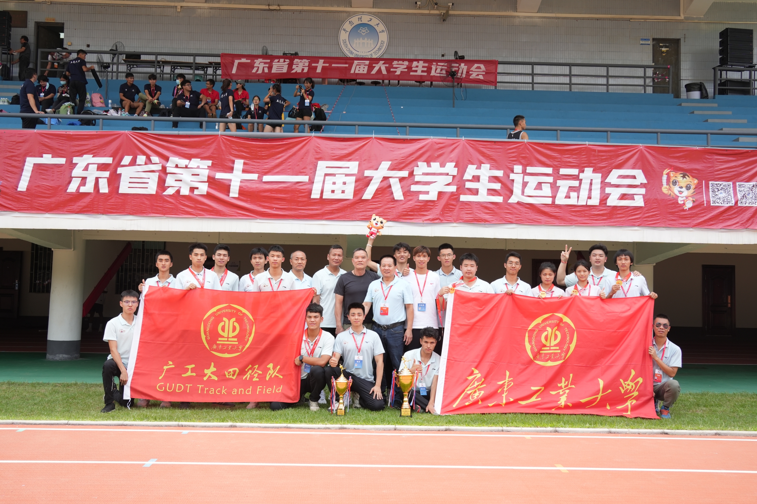 6月18日-6月25日,广工田径队在广东省第十一届大学生运动会田径比赛中不畏强手、奋勇争先,赛出水平,赛出风格,勇夺4金1银2铜的优异成绩。位列甲组金牌榜第二、甲组团体总分第三名的卓越战绩,刷新了广工在省大运会田径项目的金牌数目最高获奖纪录。