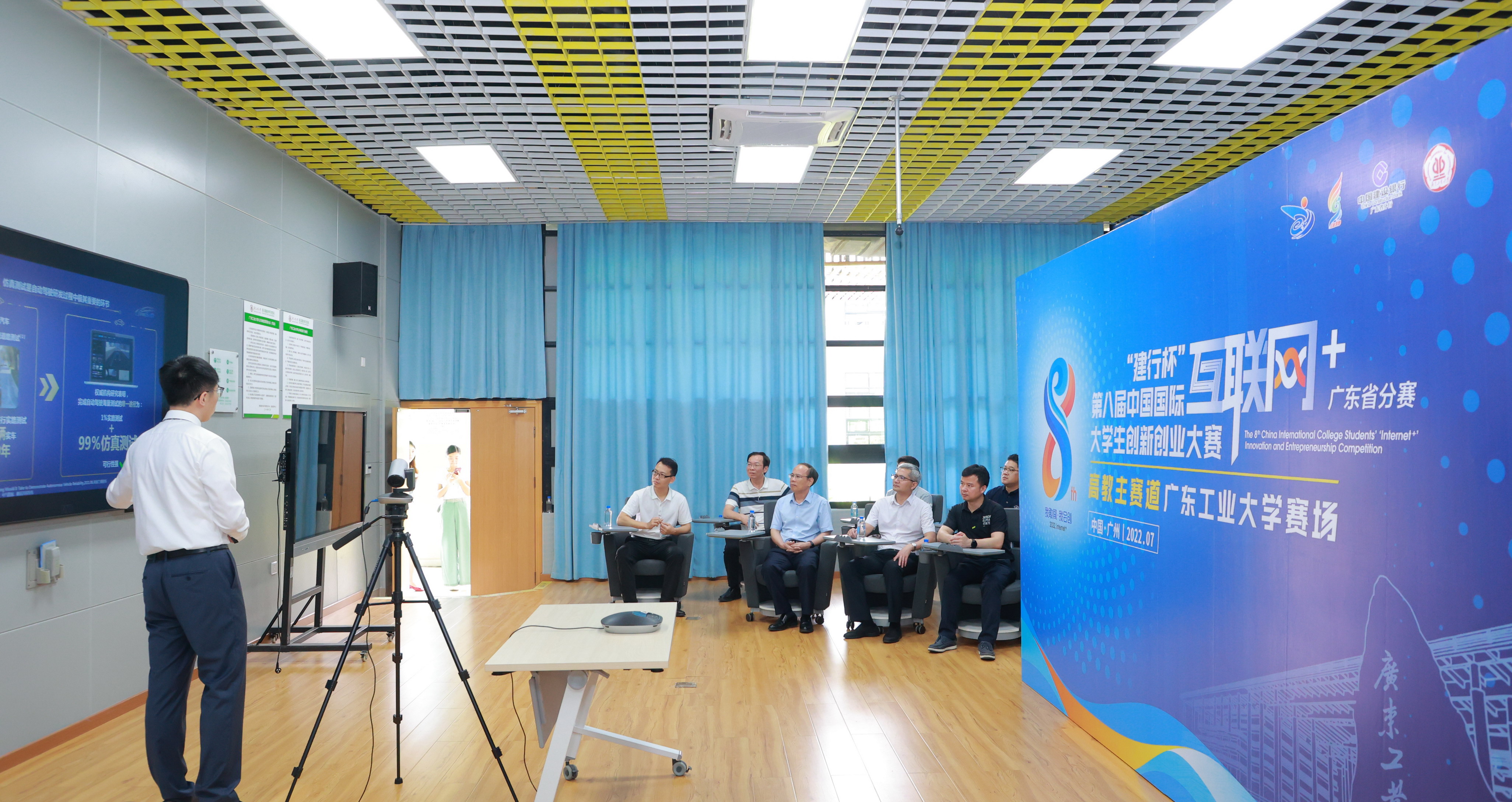 第八届中国国际“互联网+”大学生创新创业大赛广东省分赛决赛将于7月14日至15日采用线上比赛的方式进行,主赛场设在东莞理工学院松山湖校区。7月11日上午,校长邱学青、副校长陈卓武来到备赛现场慰问指导正在紧张备战的参赛师生,并对备赛工作给予了细致的指导。晋级项目所在学院领导、项目指导老师以及项目团队参与了本次活动。
