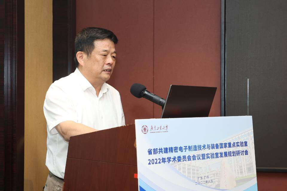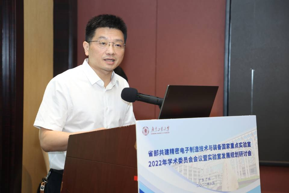 8月14日,线上买球官网(中国)官方网站省部共建精密电子制造技术与装备国家重点实验室(以下简称“国重实验室”)2022年学术委员会暨实验室发展规划研讨会在广州召开,会议采用线上线下相结合的形式进行。国重实验室学术委员会主任、华中科技大学校长尤政院士,实验室副主任、长春光机所原所长王立军院士等全体学术委员会成员,特邀专家中南大学钟掘院士、浙江大学谭建荣院士、清华大学雒建斌院士、南京航空航天大学校长单忠德院士等一批知名专家学者,还有大族激光、华为海思、广州新粤能、兴森快捷、苏州迈为等一批知名电子制造企业技术专家参加了会议。广东省科技厅实验室与平台基地处处长黄江康、学校副校长王成勇出席会议并致辞。会议由国重实验室主任陈新教授主持。
