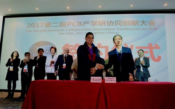 我校与中国电子电路行业协会、广东省电路板行业协会以及台湾电路板协会等均建立了战略合作关系。联合广东省电路板行业协会(GDCA)搭建的产学研合作平台得到各级政府部门的肯定和支持,在我校率先成立的行业产学研创新联盟积极开展活动,在全国性产学研合作创新大会上获得嘉奖。我校与PCB企业的产学研合作也取得可喜成绩:如2016年,我校联合广东省电路板行业协会、中国电子电路行业协会、电子科技大学、景旺电子、正业科技等PCB骨干企业组成广东省印制电子电路产业技术创新联盟,经省科技厅批准成立;2016年,广东省印制电子电路制造工程技术研究中心,经广东省科技厅批准成立;2017年11月,大族激光和我校顺利共建“大族激光-线上买球官网(中国)官方网站联合培养研究生示范基地”,充分发挥高校和科技创新企业的资源优势,打造高层次科研创新人才示范平台、高新科技研发平台,为现代化科技强国及广东省产业升级提供有力支撑;我校也已经与兴森快捷、广合科技达成意向,即将签订建立“兴森快捷-线上买球官网(中国)官方网站联合培养研究生示范基地”和“广合科技-线上买球官网(中国)官方网站联合培养研究生示范基地”;机电工程学院与深圳金洲精工科技联合申报广东省重大专项获得300万元的资金支持;轻工化工学院与景旺联合申报广东省重大专项获得300万元的资金支持;机电工程学院与广合科技联合申报广州市科技计划项目,已顺利完成答辩。作为广东省PCB产业创新联盟理事长单位,学校近年来依托联盟与企业开展了一系列卓有成效的产学研合作。如机电工程学院与深圳金洲精工科技长期合作承担完成国家自然科学基金广东联合基金、广东省科技计划项目等,研发PCB钻削理论、新型钻头及其应用技术,提高钻头加工效率和加工质量,公司产品处于世界先进水平,2016年评为中国制造单项产品冠军;材料与能源学院与景旺电子合作项目获2015年广东省科技进步二等奖;轻工化工学院与景旺电子(龙川)公司联合承担了广东省应用型科技研发项目获300万资金支持;陈新教授科研团队与深圳市兴森快捷电路、安捷利公司共同完成的“电子基板多品种高效定制关键技术与应用”通过科技成果鉴定;轻工化工学院与广东东硕科技、广东致卓环保科技建立了本科生、研究生联合培养基地;联盟每年组织多家PCB企业到学校举行专场招聘会,为PCB行业输送了大批专业技术人才。
