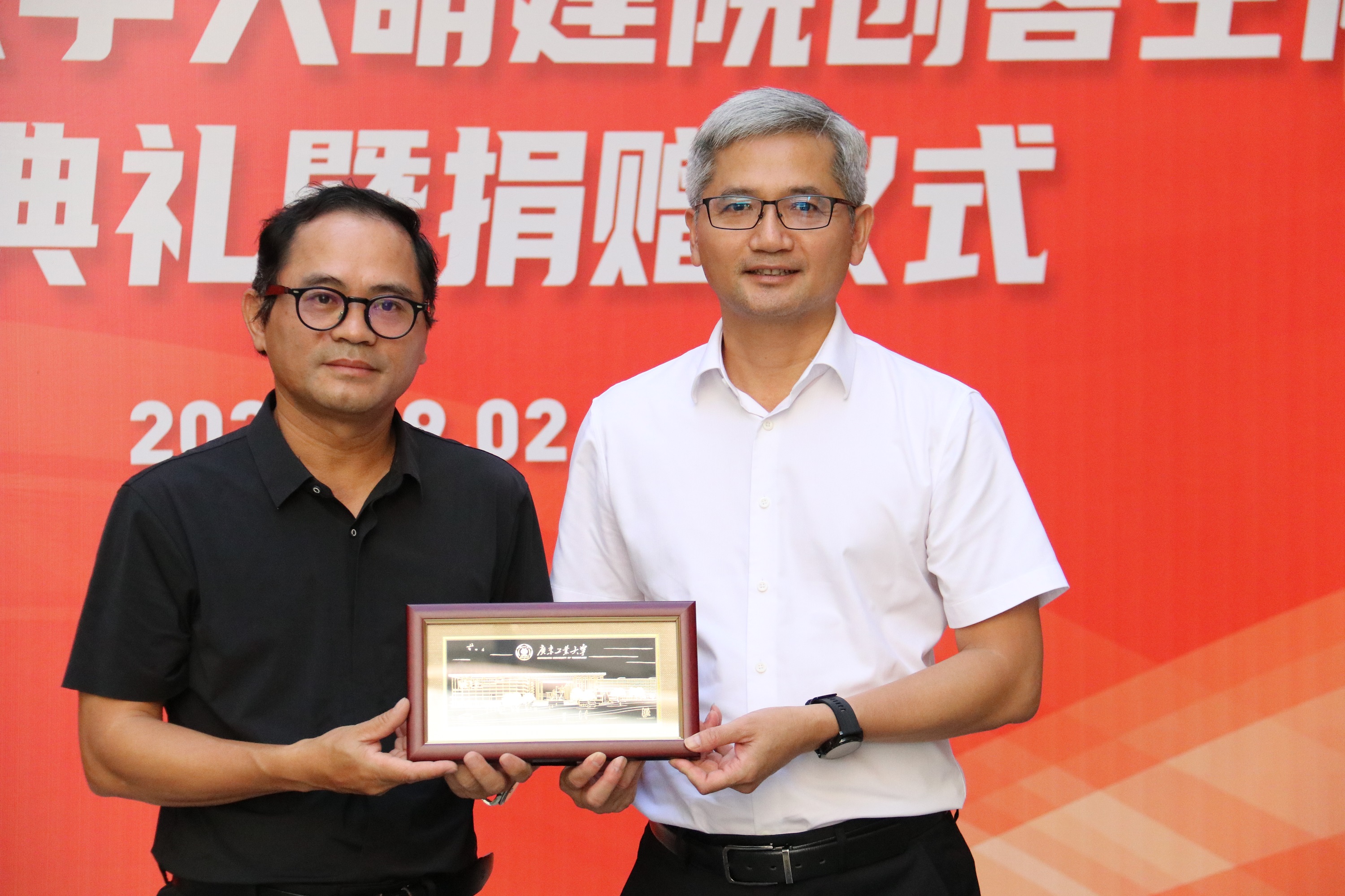陈卓武(右)向陈宏良(左)赠送纪念品