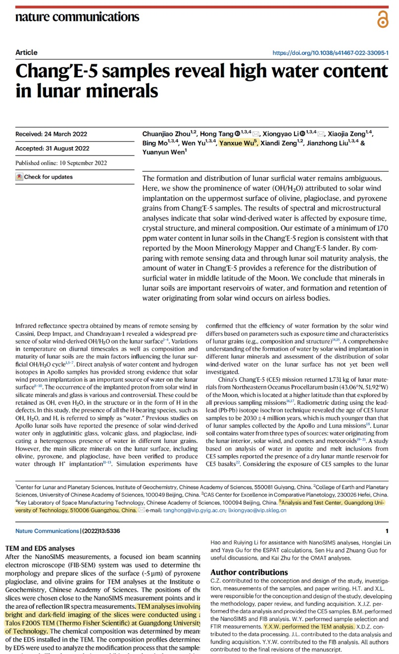 线上买球官网(中国)官方网站作为合作研究单位,深度参与到了嫦娥五号月壤样品的测试分析。本成果中FIB切片透射形貌、成分、高分辨结构测试及相关数据分析,由分析测试中心吴焱学老师支撑完成。在学校大力支持下,中心的测试服务质量和水平得到很大提升,逐渐具备了服务学校科研和人才培养,服务国家重大需求和项目的能力,未来中心将尽其所能支撑学校发展。